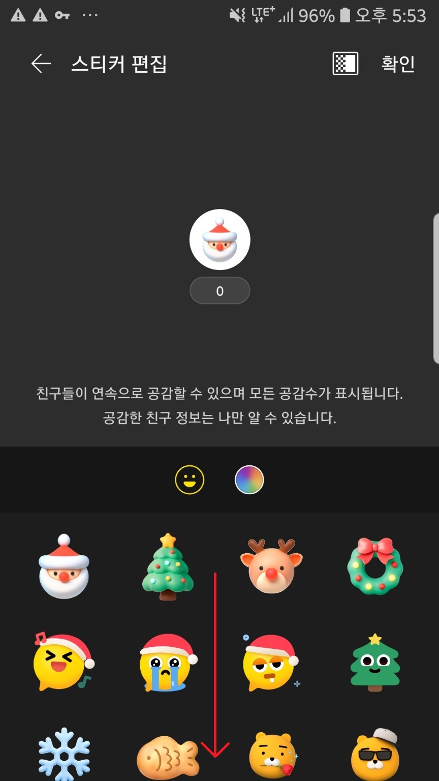 아래 위로 스크롤 ▶공감스티커 선택