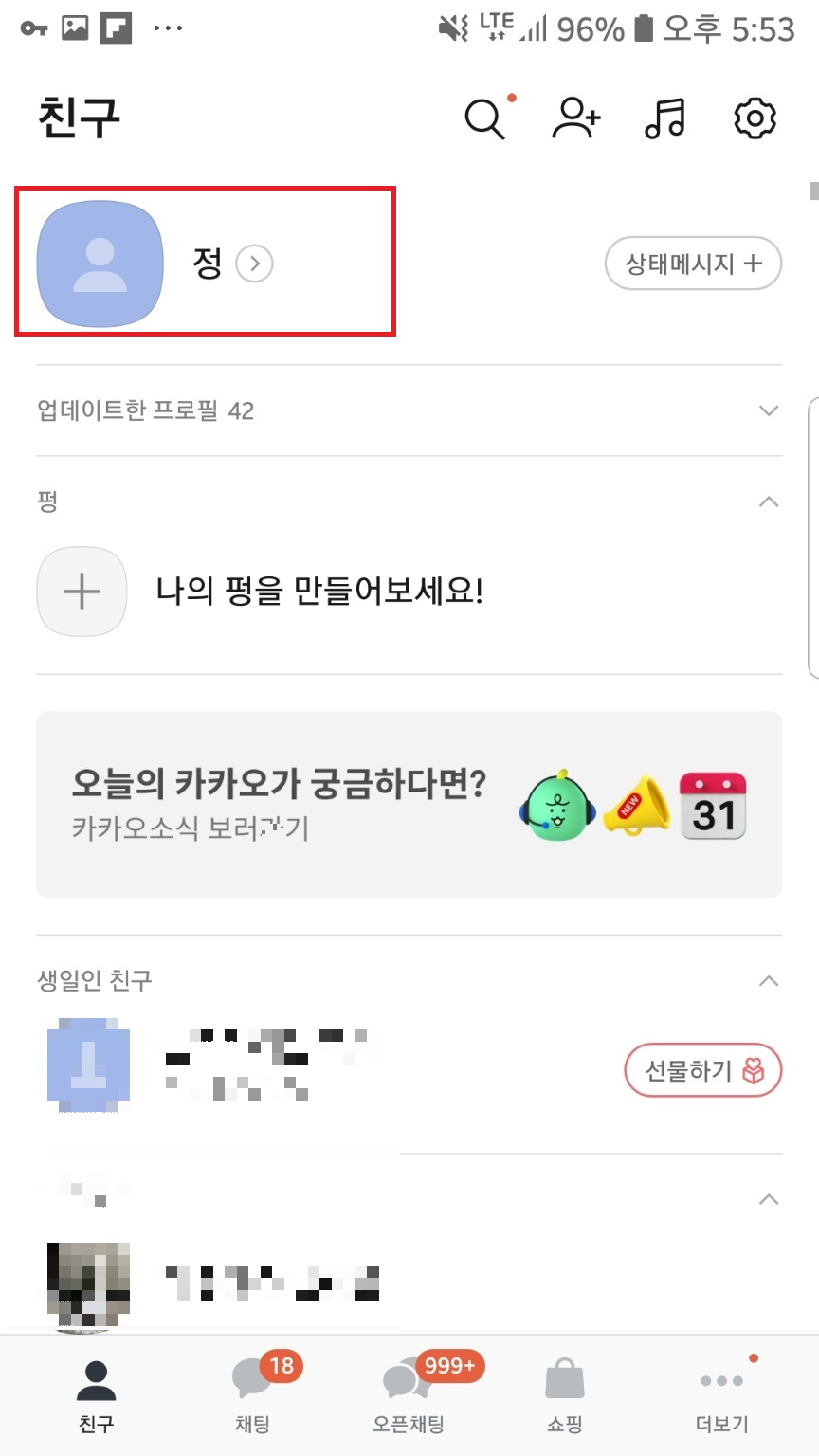 카톡 실행▶내 프로필
