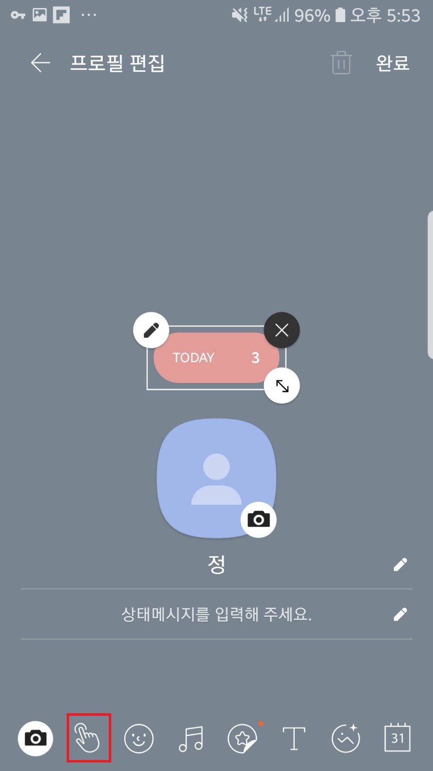 프로필 편집 ▶손가락 아이콘