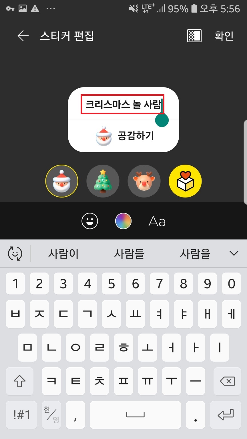 맨 위 왼쪽 스티커 선택 ▶텍스트 입력