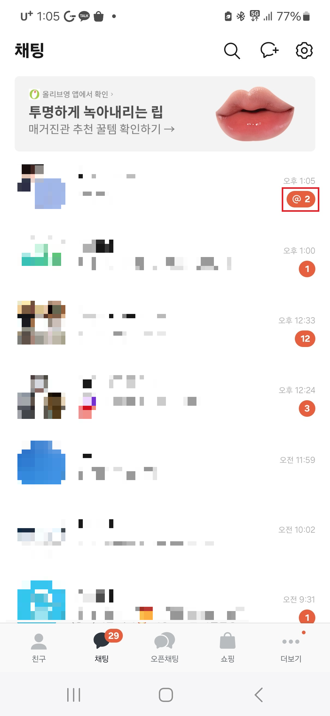 여러분 혹시 카톡 멘션 기능 알고 계신가요? 단체 채팅방을 이용하다보면 많은 말이 오가기 때문에 꼭 안 보는 사람이 한 명씩 있잖아요.