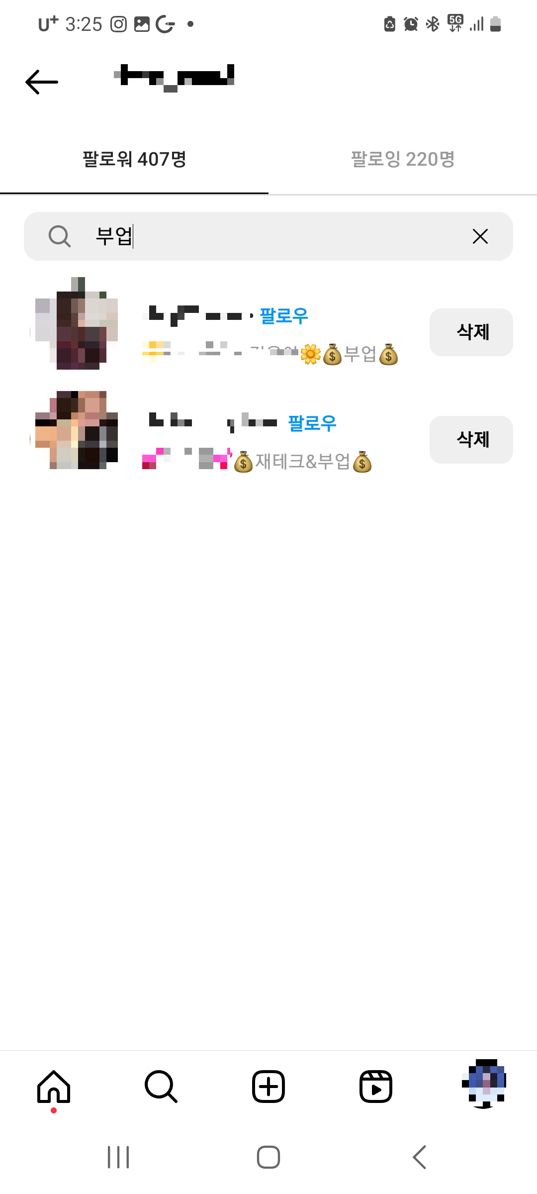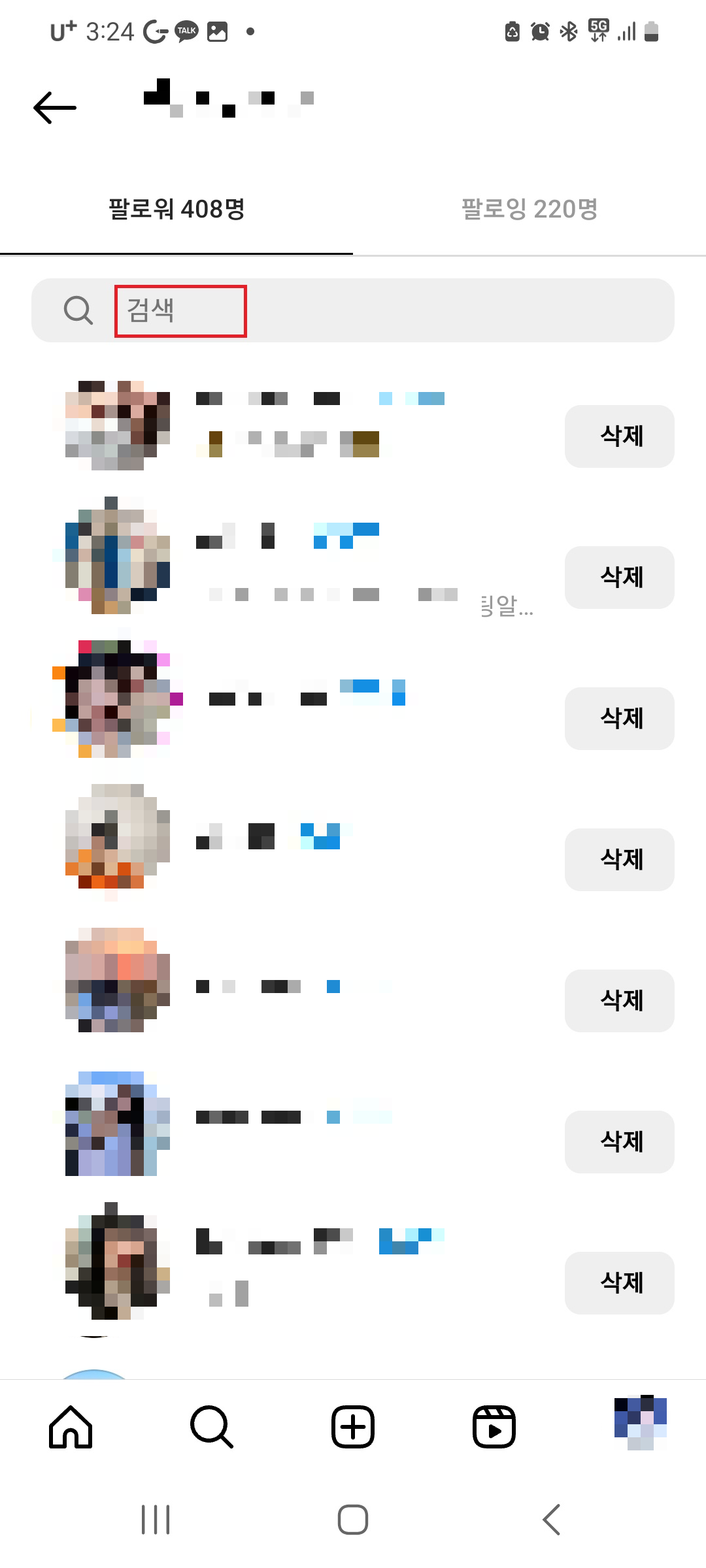 인스타 팔로워 삭제