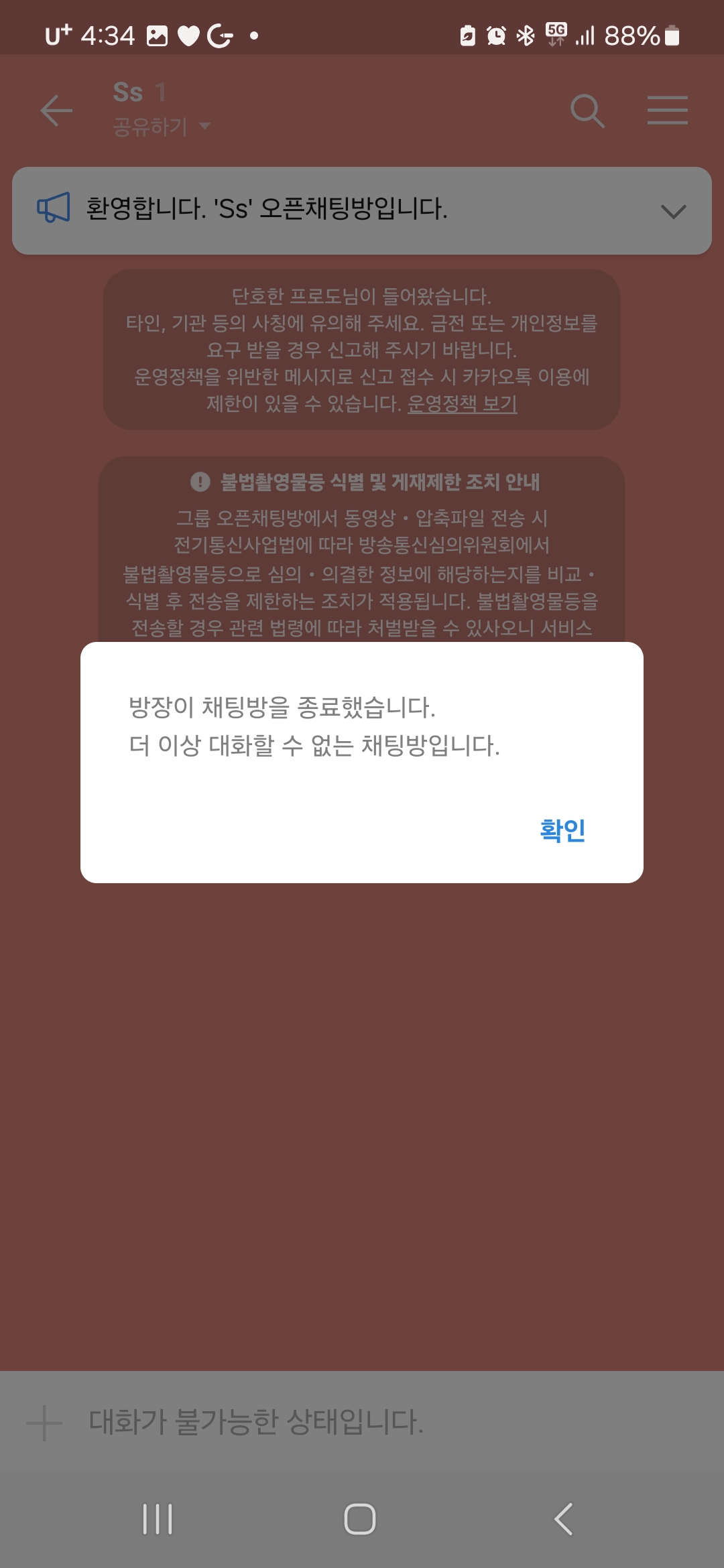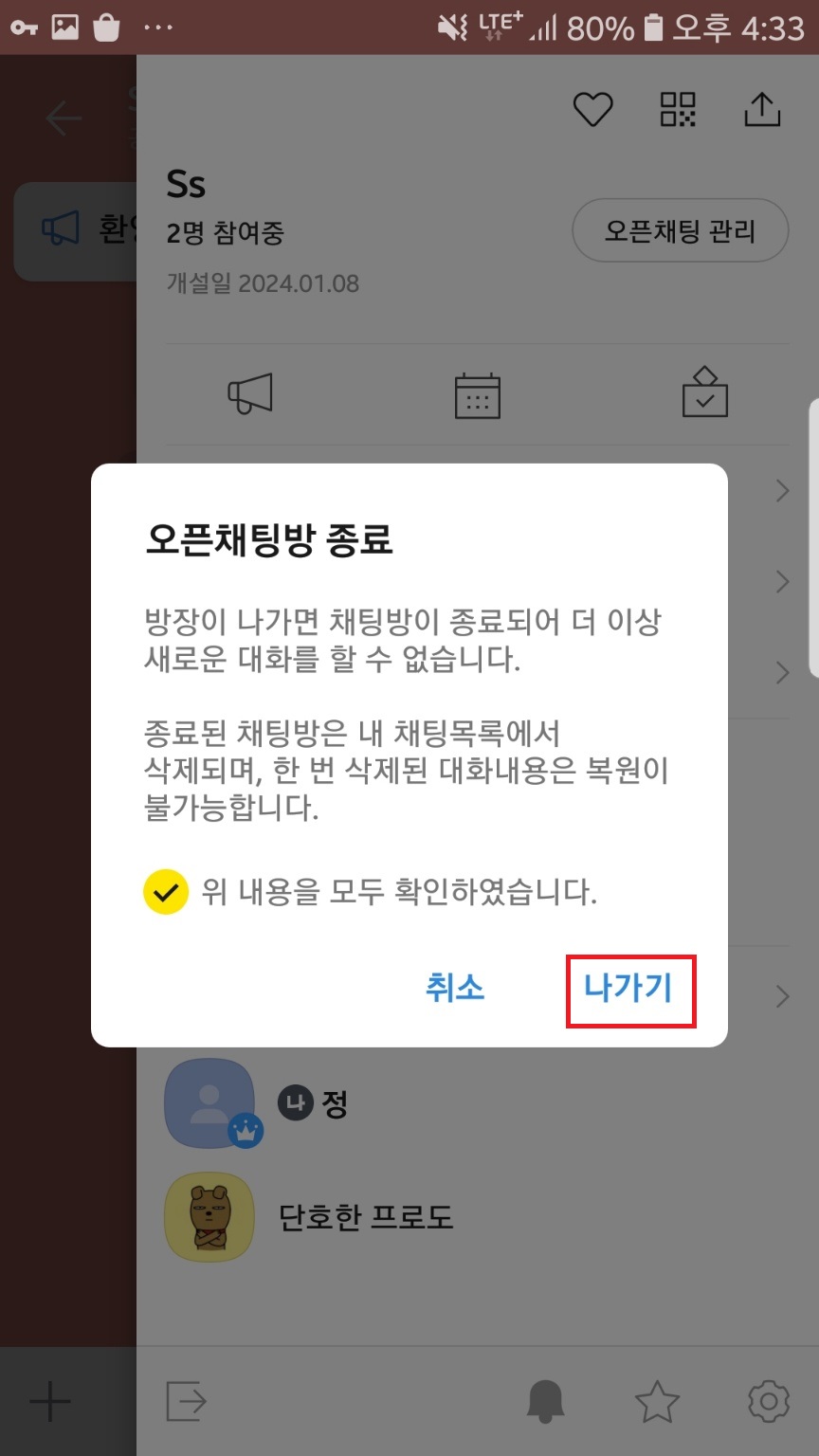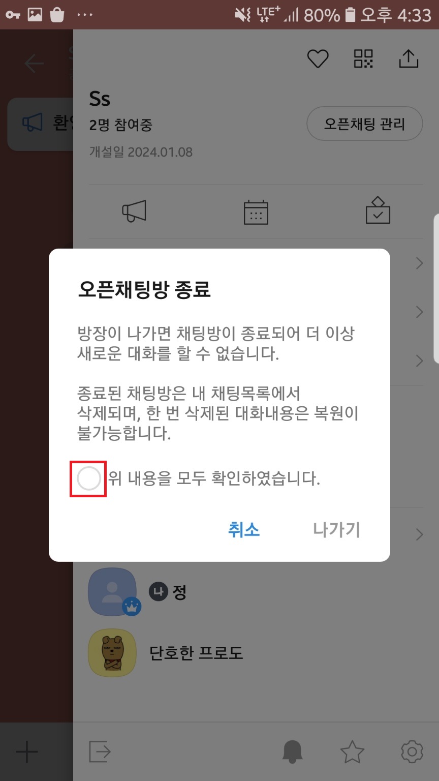 오픈채팅방 종료