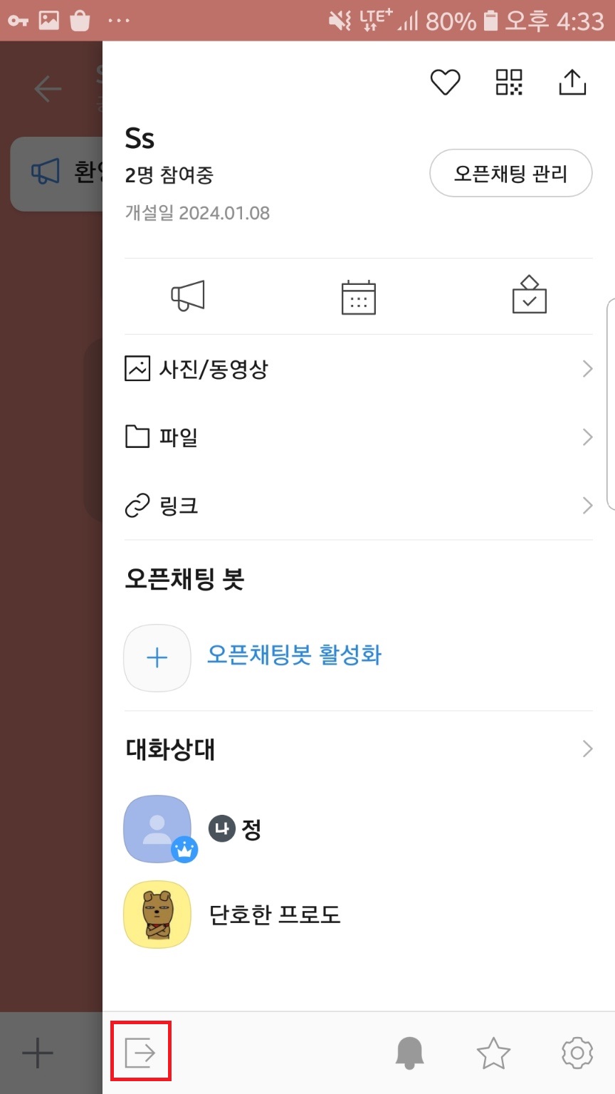 오픈채팅방을 선택해주시는데, 이때 내가 방장인 즉, 내가 만든 오픈채팅방으로 들어가주세요.