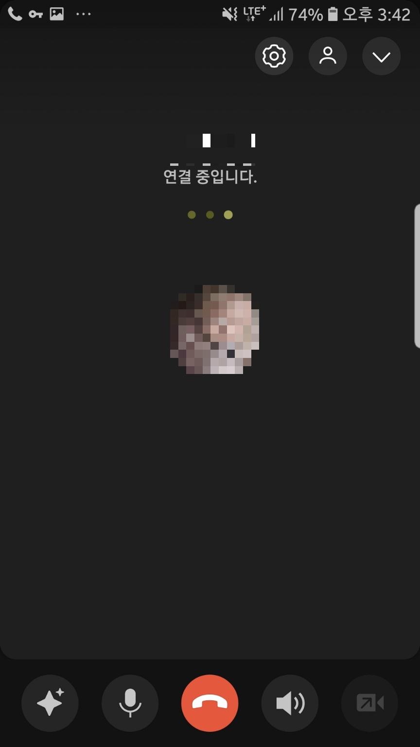 좌측이 연결중인 화면, 우측이 상대방이 수락하고 보이스톡이 연결된 화면이에요!