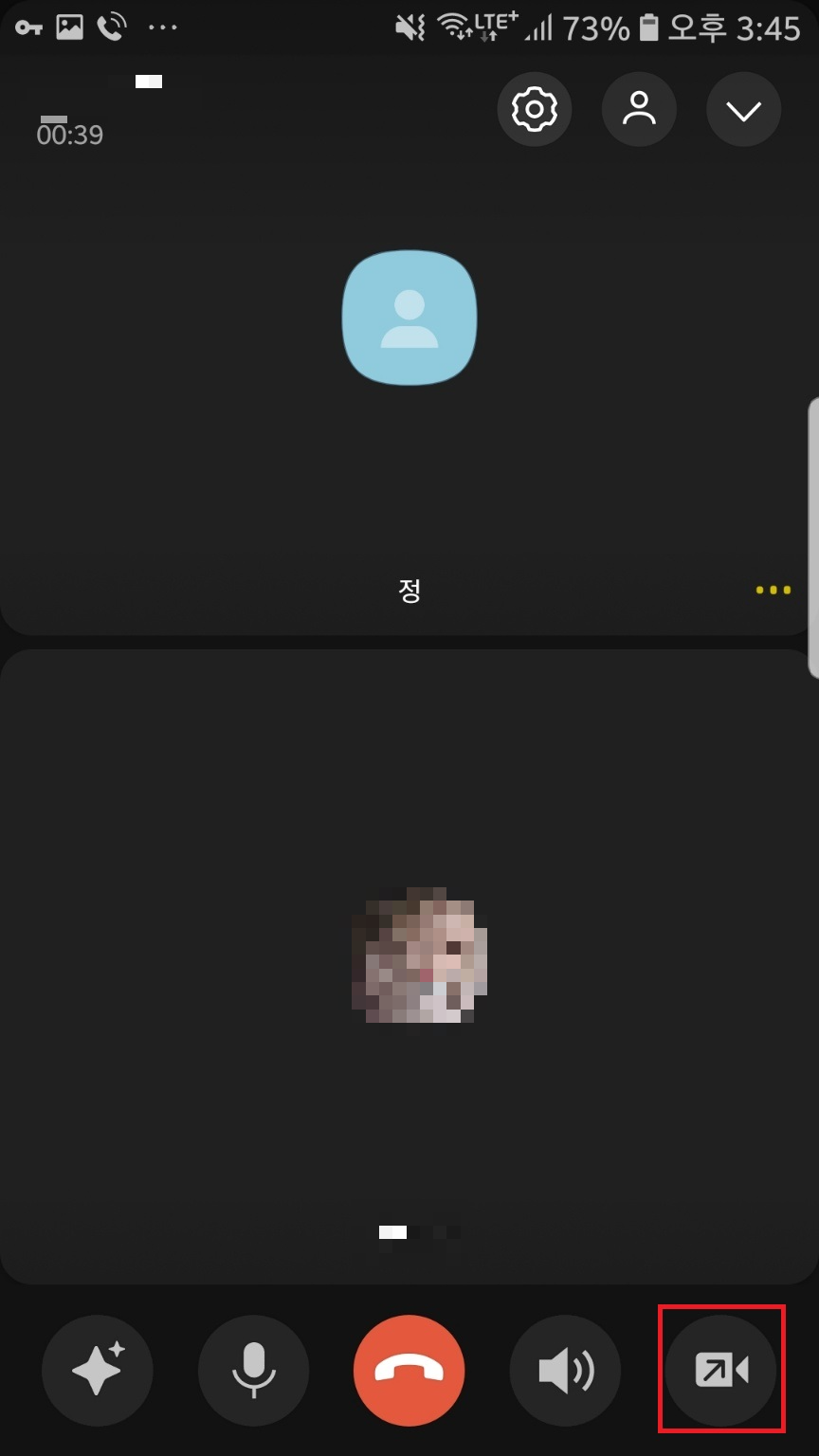 우측 하단 카메라 아이콘을 선택하면 페이스톡으로 전환할 수 있어요.