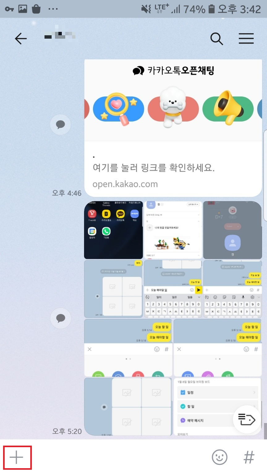 채팅방을 선택한 후 하단 + 아이콘을 눌러주세요.