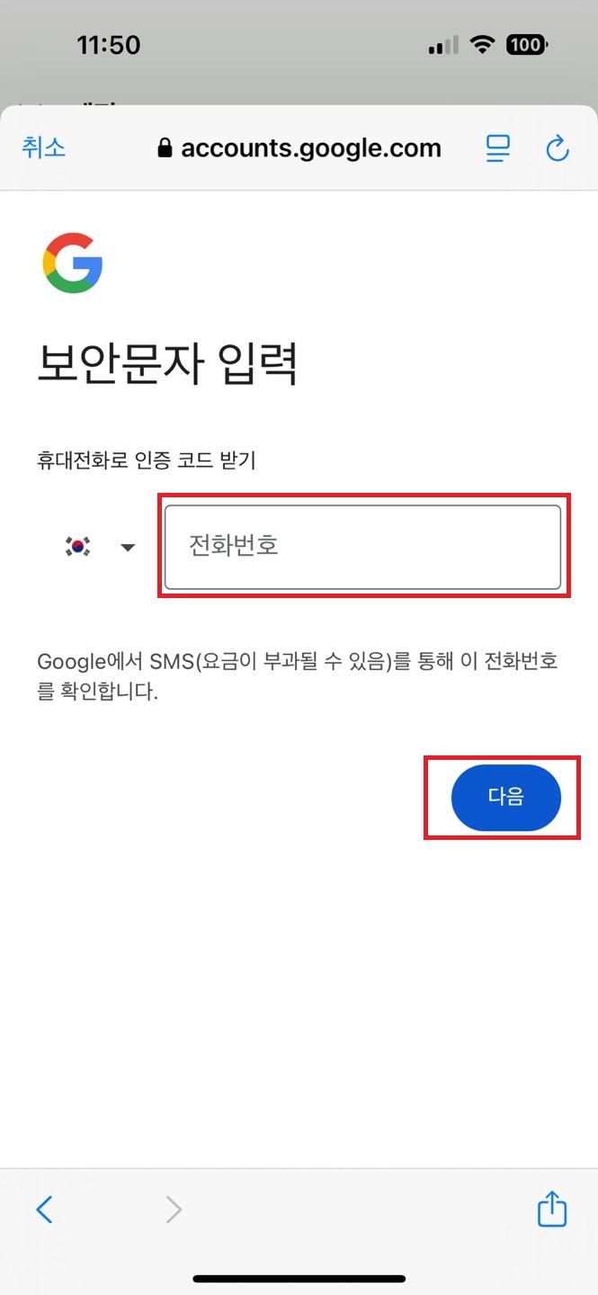 전화번호를 입력하고 인증번호를 받은 다음, 다음 버튼을 클릭해주세요. 그 다음 계정 정보가 맞는지 검토 후, 한 번 더 다음 버튼을 눌러주세요.