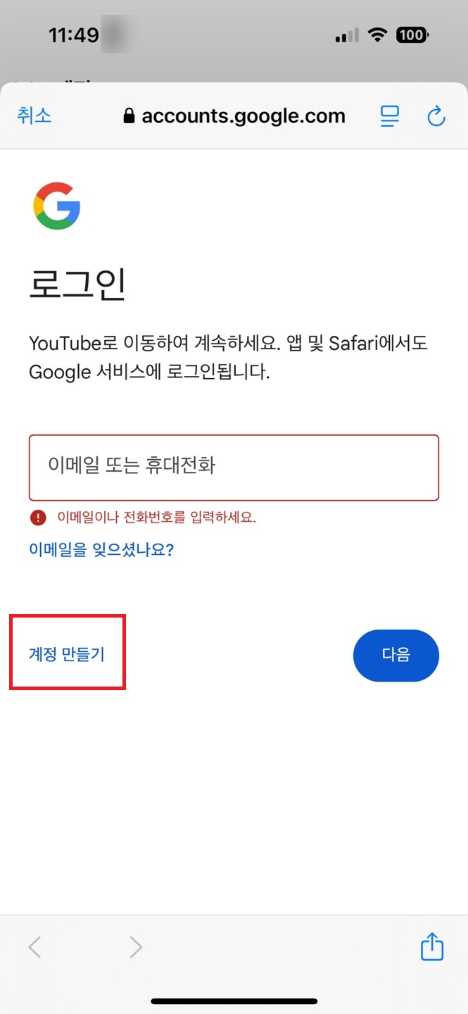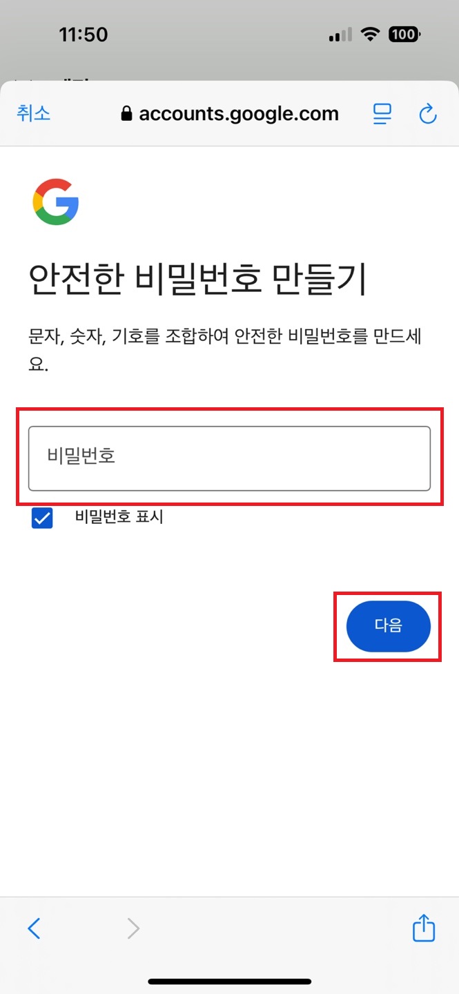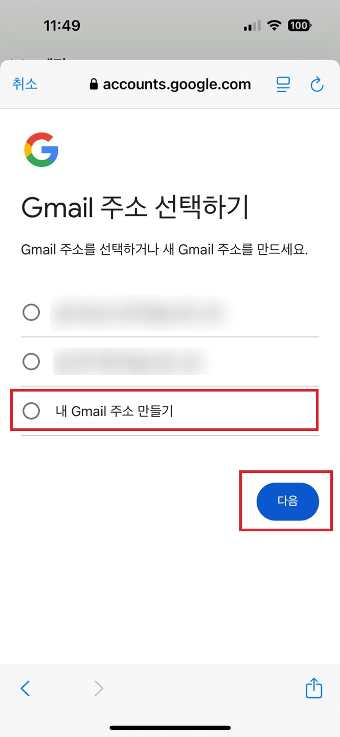 내 Gmail 주소 만들기 ▶ 다음 ▶ 비밀번호 ▶ 다음