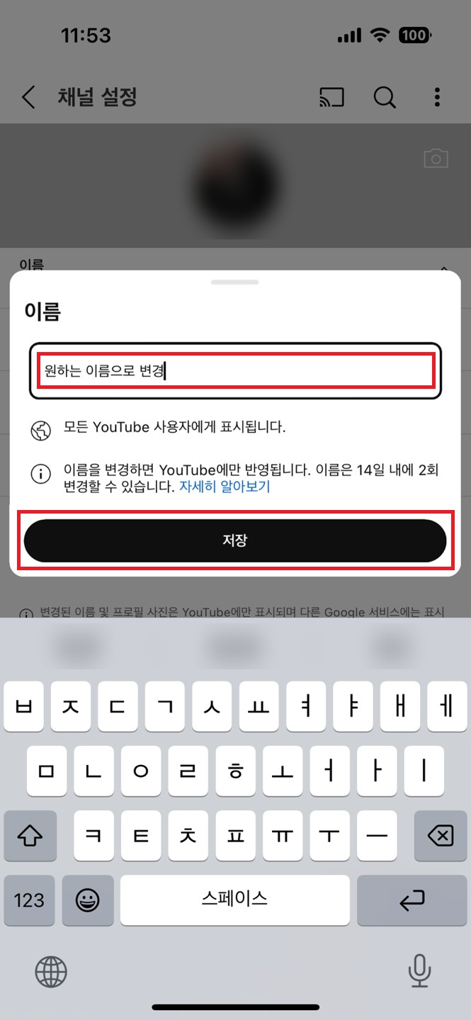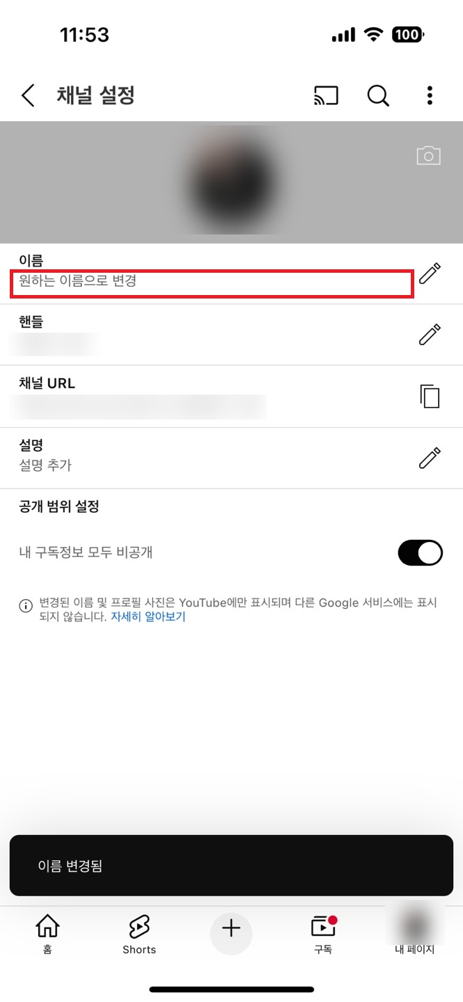 유튜브 이름 변경 완료
