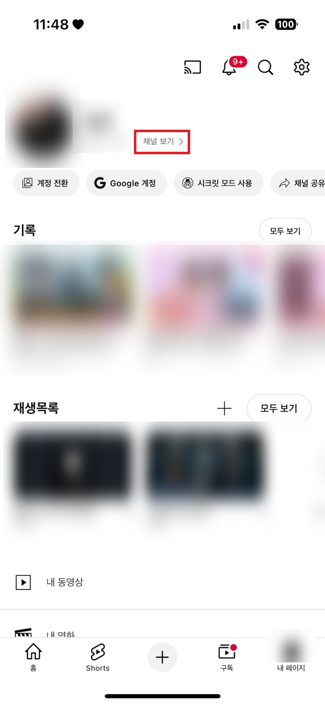 유튜브 내 채널 보기