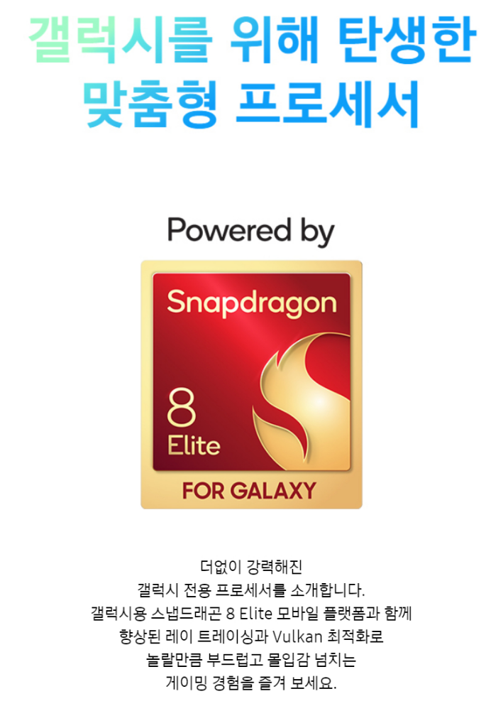 갤럭시용 스냅드래곤 8 Elite 모바일 플랫폼과 함께 향상된 레이 트레이싱과 Vulkan 최적화로 놀랄만큼 부드럽고 몰입감 넘치는 게이밍 경험을 즐기실 수 있어요.