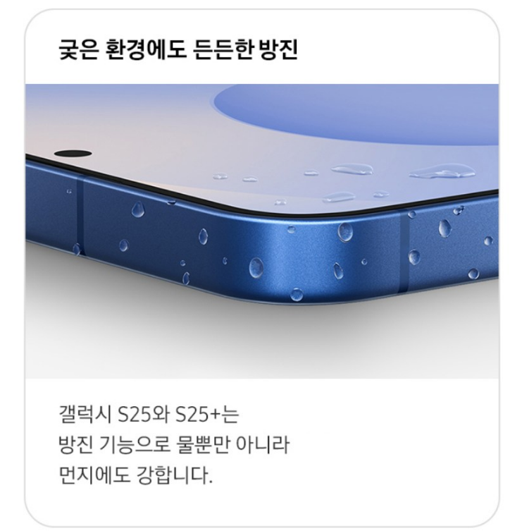 갤럭시25는 방진 기능으로 물 뿐만 아니라 먼지에도 강해요.