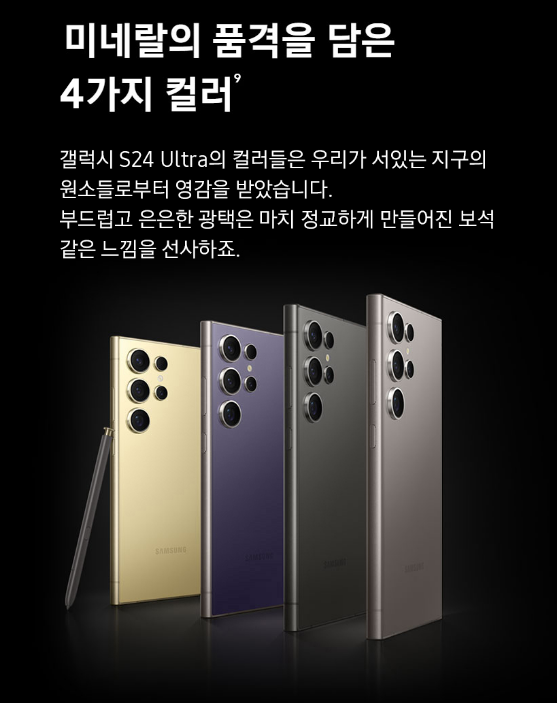 S24 Ultra의 컬러들은 우리가 서있는 지구의 원소들로부터 영감을 받았어요. 부드럽고 은은한 광택은 마치 정교하게 만들어진 보석같은 느낌을 선사해요.