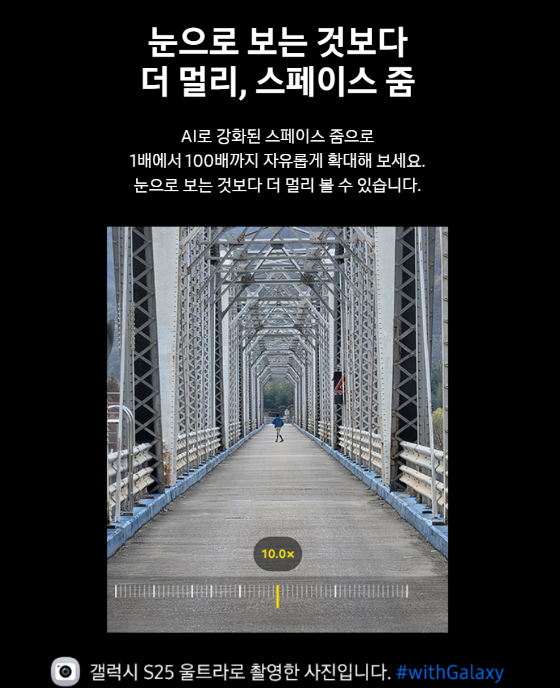 AI로 강화된 스페이스 줌으로 1배에서 100배까지 자유롭게 확대해 보세요. 눈으로 보는 것보다 더 멀리 볼 수 있어요.