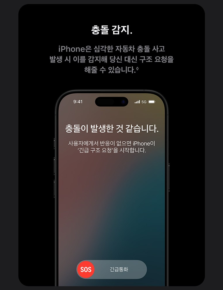 아이폰은 심각한 자동차 충돌 사고 발생 시 이를 감지해 대신 구조 요청을 해줄 수 있어요.