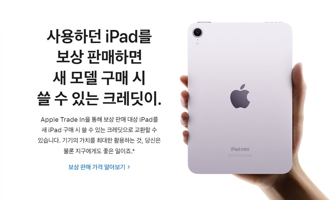 이전에 사용하던 아이패드를 보상 판매하면 새 모델 구매시 쓸 수 있는 크레딧으로 교환할 수 있어요.