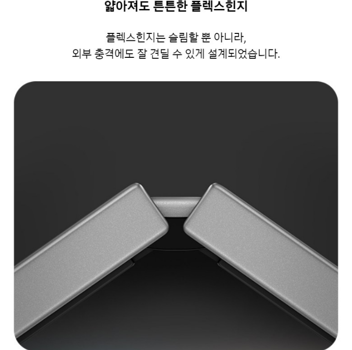 플랙스힌지는 슬림할 뿐 아니라, 외부 충격에도 잘 견딜 수 있게 설계되었어요. 또한 강화된 아머 알루미늄이 기기를 안전하게 감싸주고, 방수 성능도 가지고 있어요.