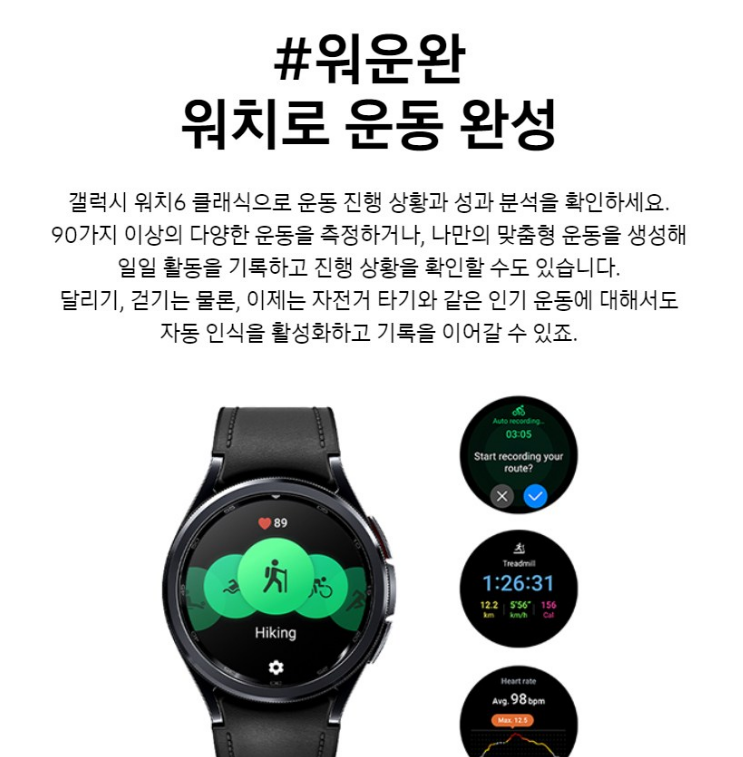 갤럭시 워치 6 클래식은 다른 스마트워치에 비해 정확한 운동 데이터를 제공한다는 장점이 있어요. 또 낙상 감지 기능이 있있어서 연세가 있으신 분들께 유용한 기능이에요.