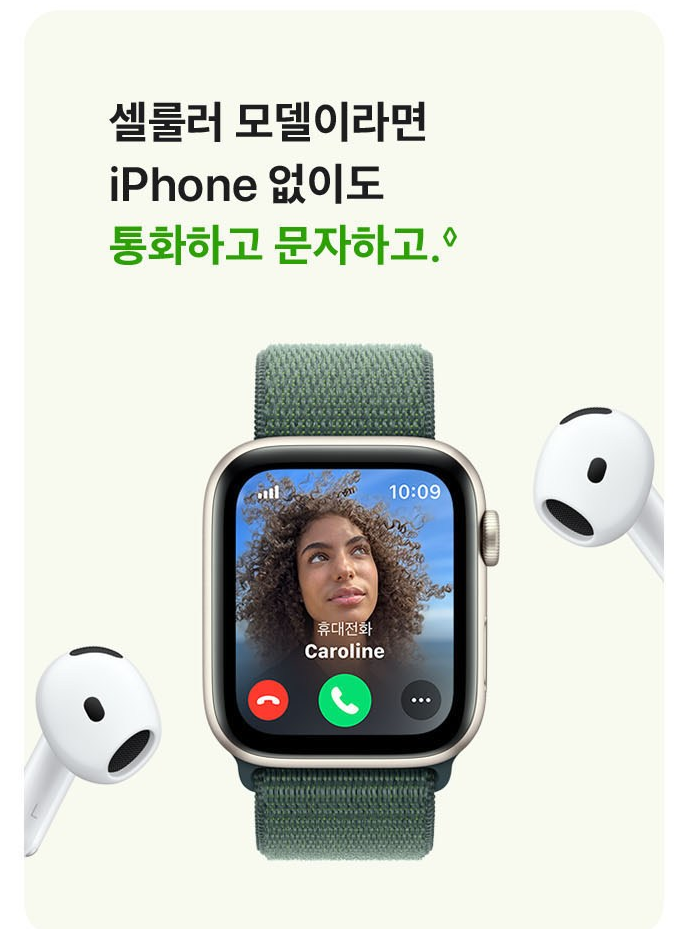 애플워치 SE 2세대는 셀룰러 모델이라면 번거로움 없이 아이폰 없이도 통화와 문자가 가능해요.