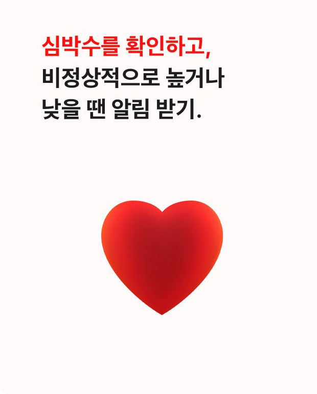 심박수를 확인하고 비정상적으로 높거나 낮을 땐 알림을 통해 확인할 수 있어요.