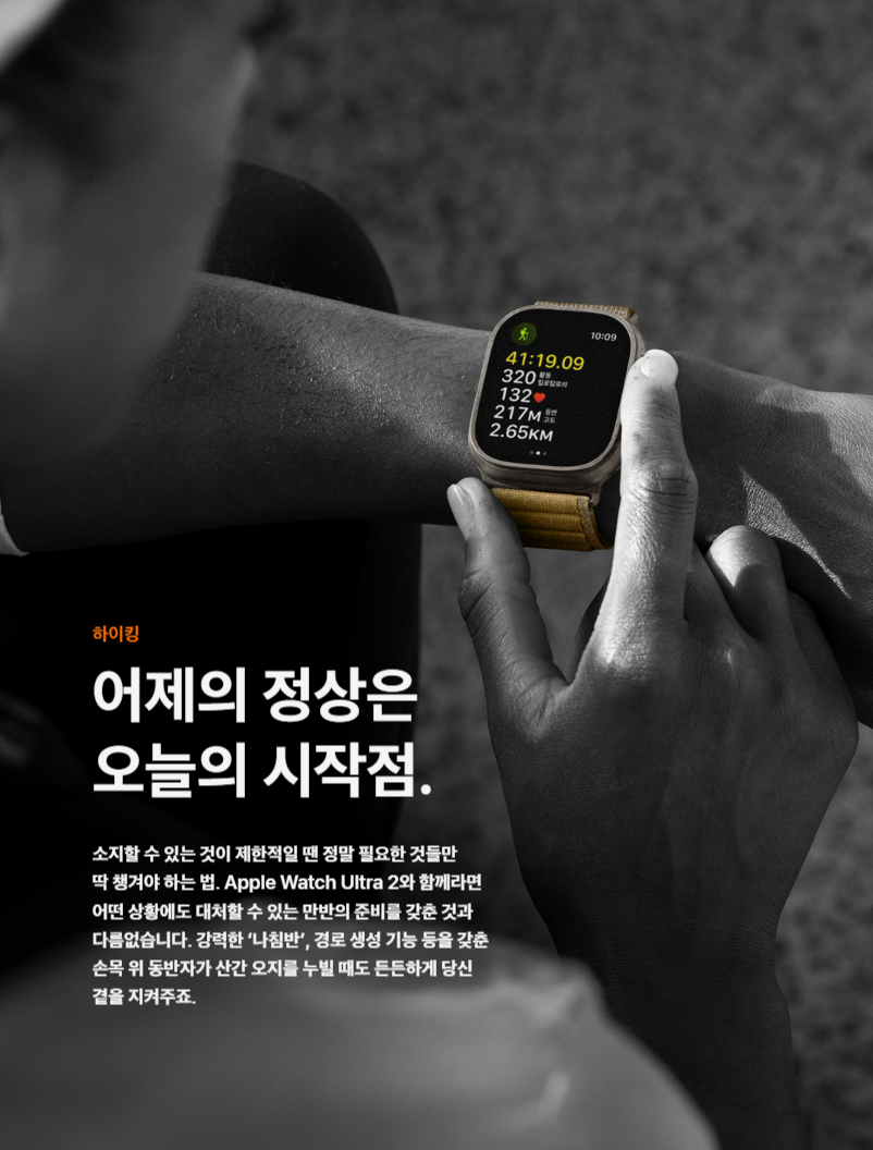 그러나 러닝이나 등산 등 아웃도어 활동을 즐기시는 분들이라면 더더욱 이 애플워치 ultra 2 구매를 고민 중이실 것 같은데요. 아웃도어 활동 측면에서 이 스마트워치가 어떤 식으로 유용하게 활용될 수 있는지 궁금하실 것 같아요.
