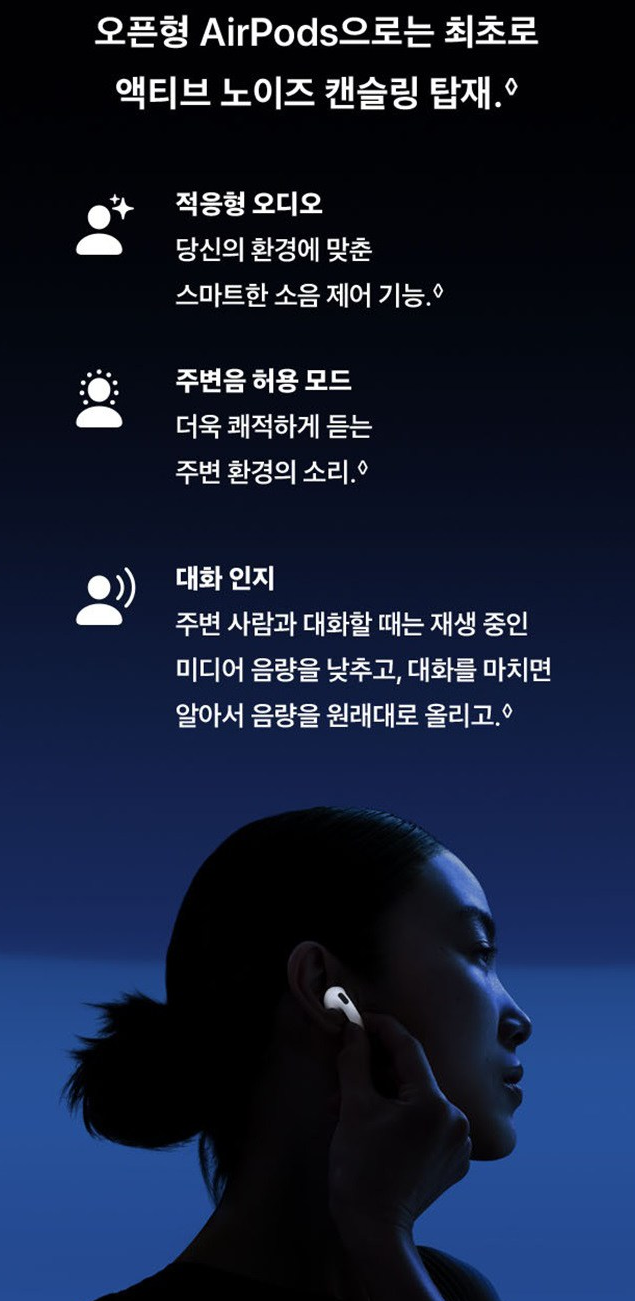 '오픈형인데 노이즈캔슬링이 잘 될까?' 의문이 드실 수도 있을 것 같아요. 그래서 지금부터 에어팟 4세대에 대해 자세하게 소개해드릴께요. 집중해서 봐주세요. ^^