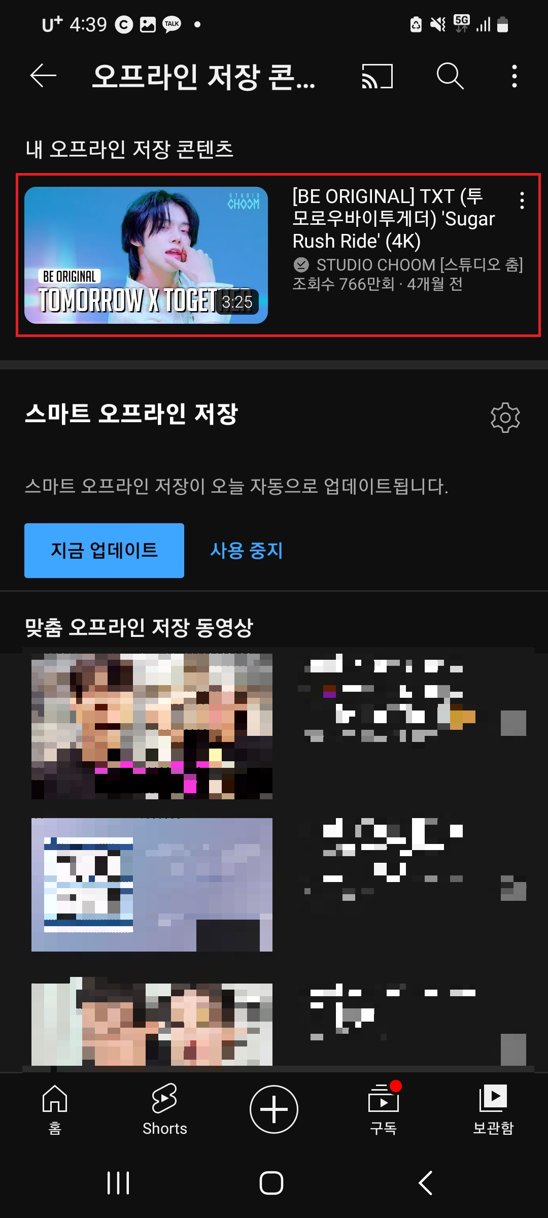 보관함 ▶ 오프라인 저장 동영상