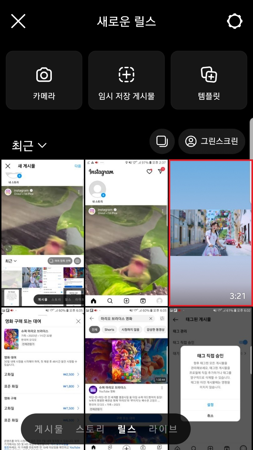 릴스▶동영상 선택