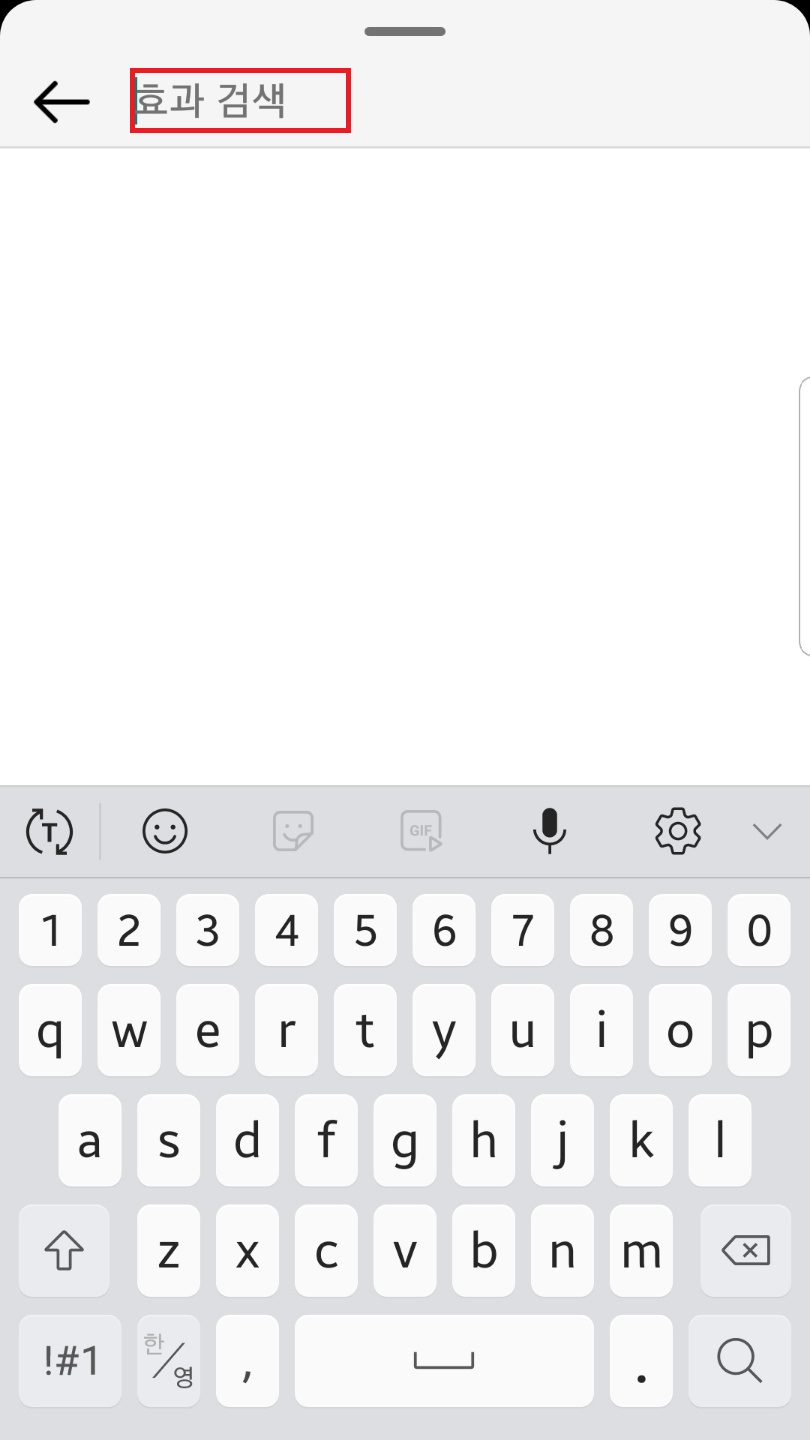 효과 검색창을 클릭하시고 원하는 효과 키워드를 써넣은 다음 키보드 우측 하단에 있는 돋보기를 클릭해주세요.