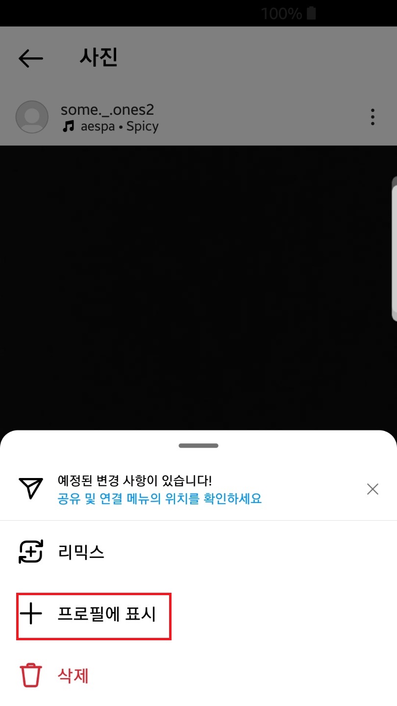 프로필에 표시를 눌러주시고 후에 뜨는 팝업창에서도 프로필에 표시를 눌러주신 후 피드로 돌아가보시면 다시 생긴 게 보이실 거예요!