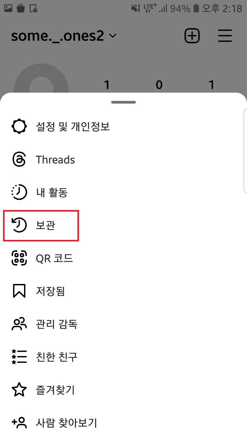 우측 상단 선 세 개를 눌러주시고 보관탭에 들어가주세요!