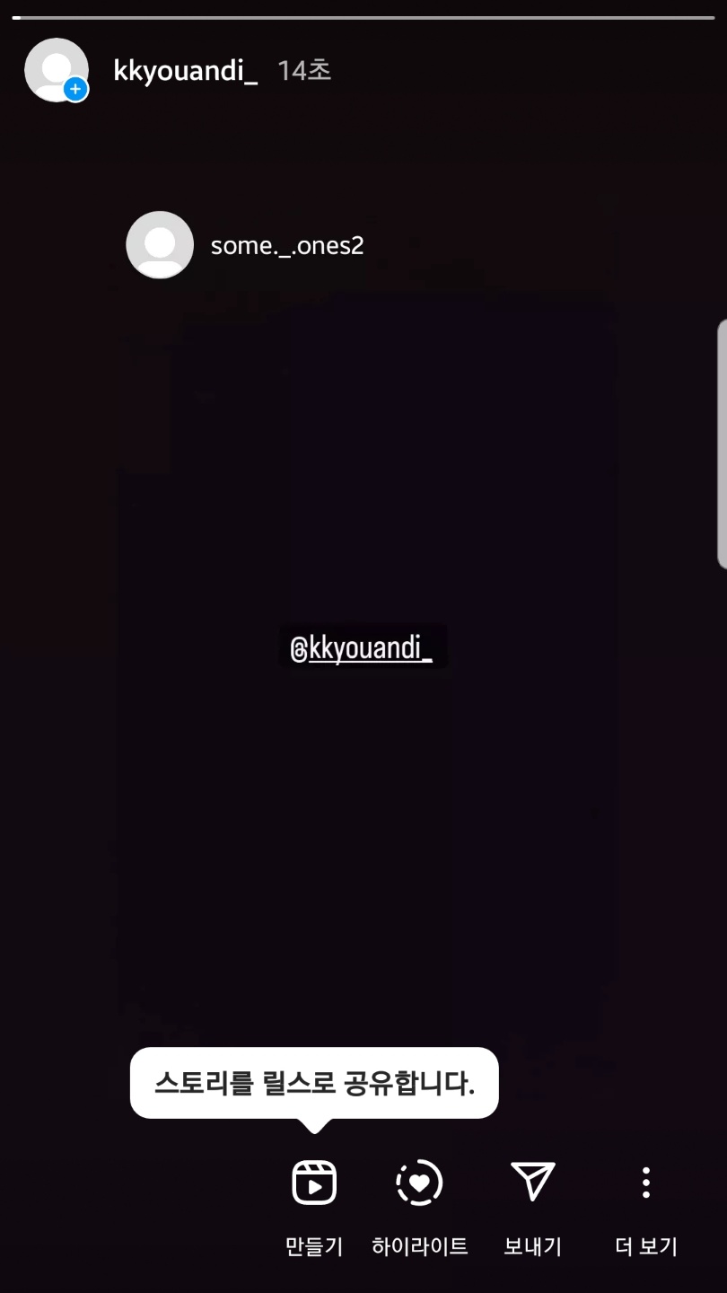 디엠창이 아니라 내가 언급된 스토리에 들어가도 스토리에 공유가 가능한 점 참고하세요!