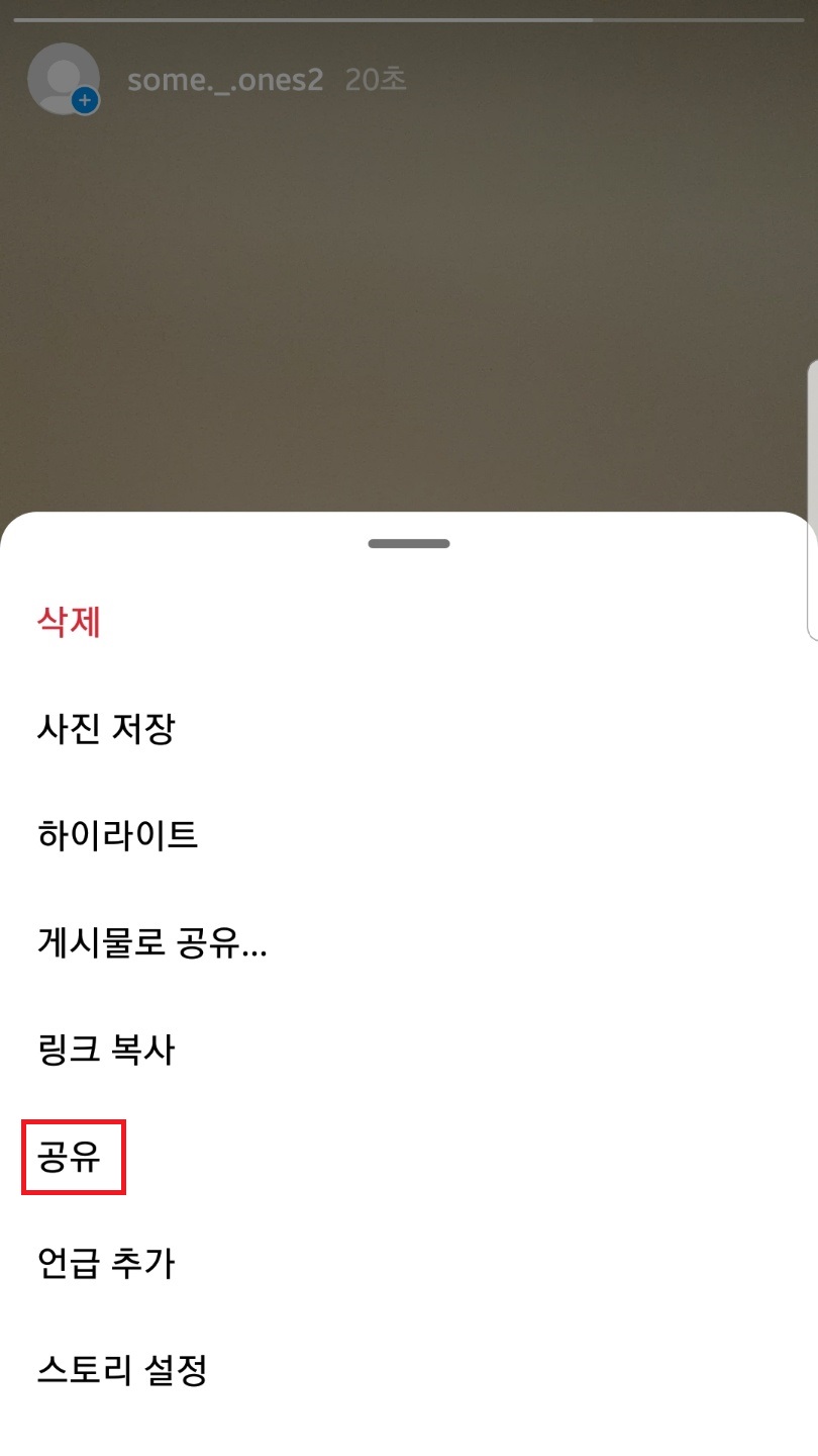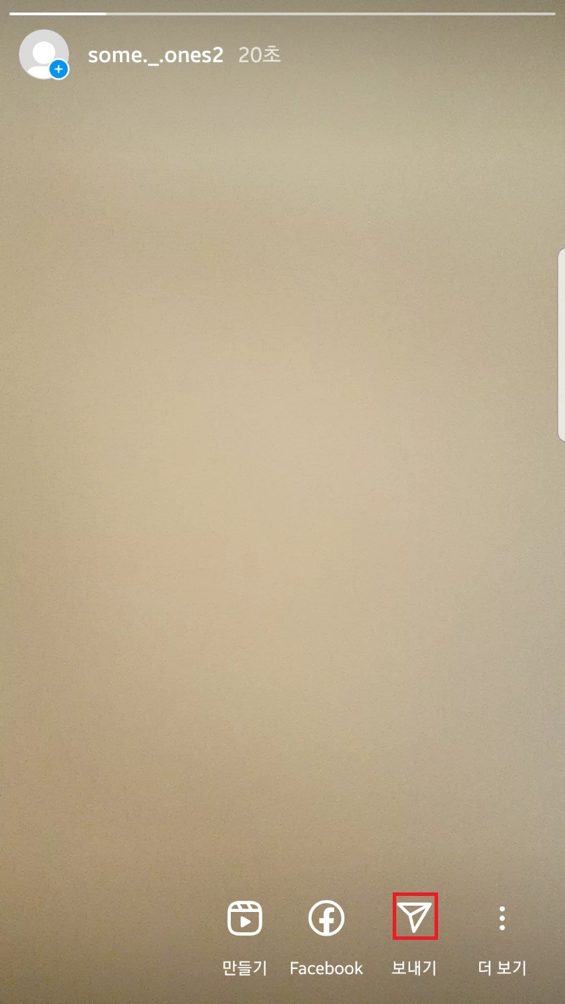 스토리 공유도 다를 건 없는데요. 스토리에 들어가서 보내기를 누르시고 공유에 들어가셔서 보낼 어플 선택해주시면 돼요!