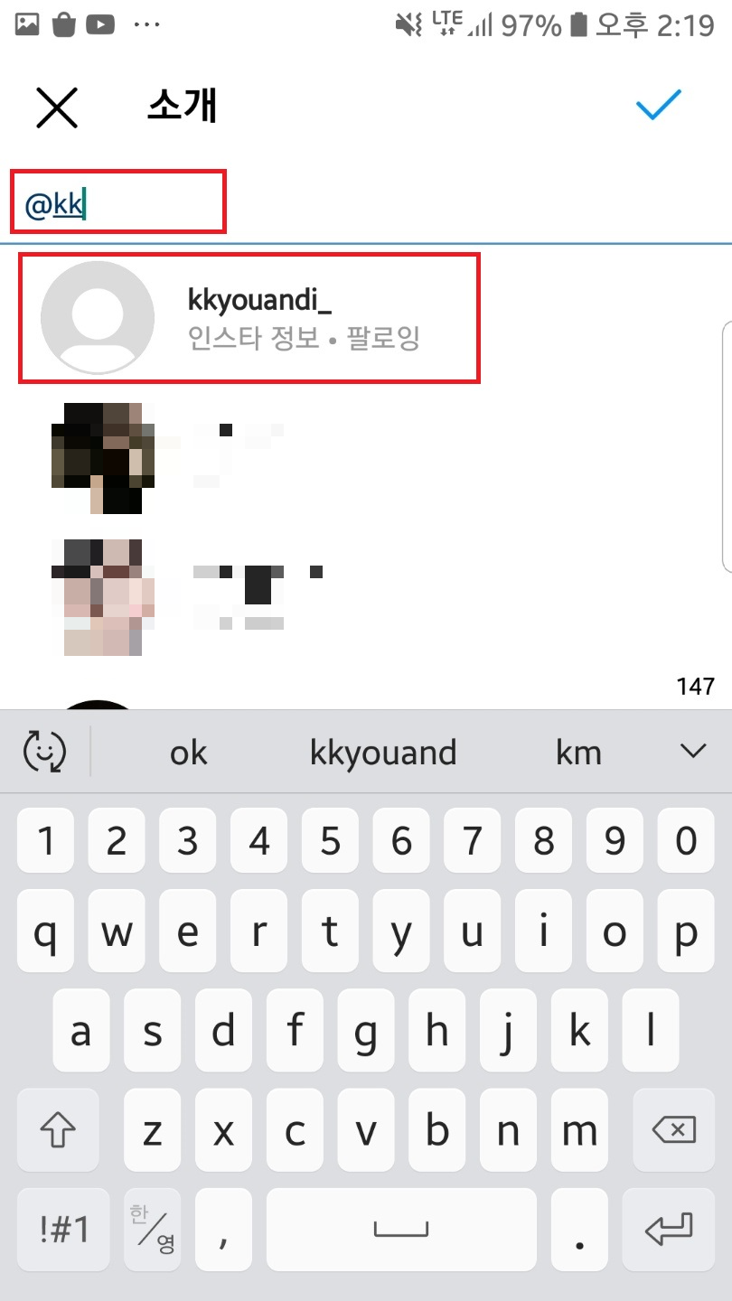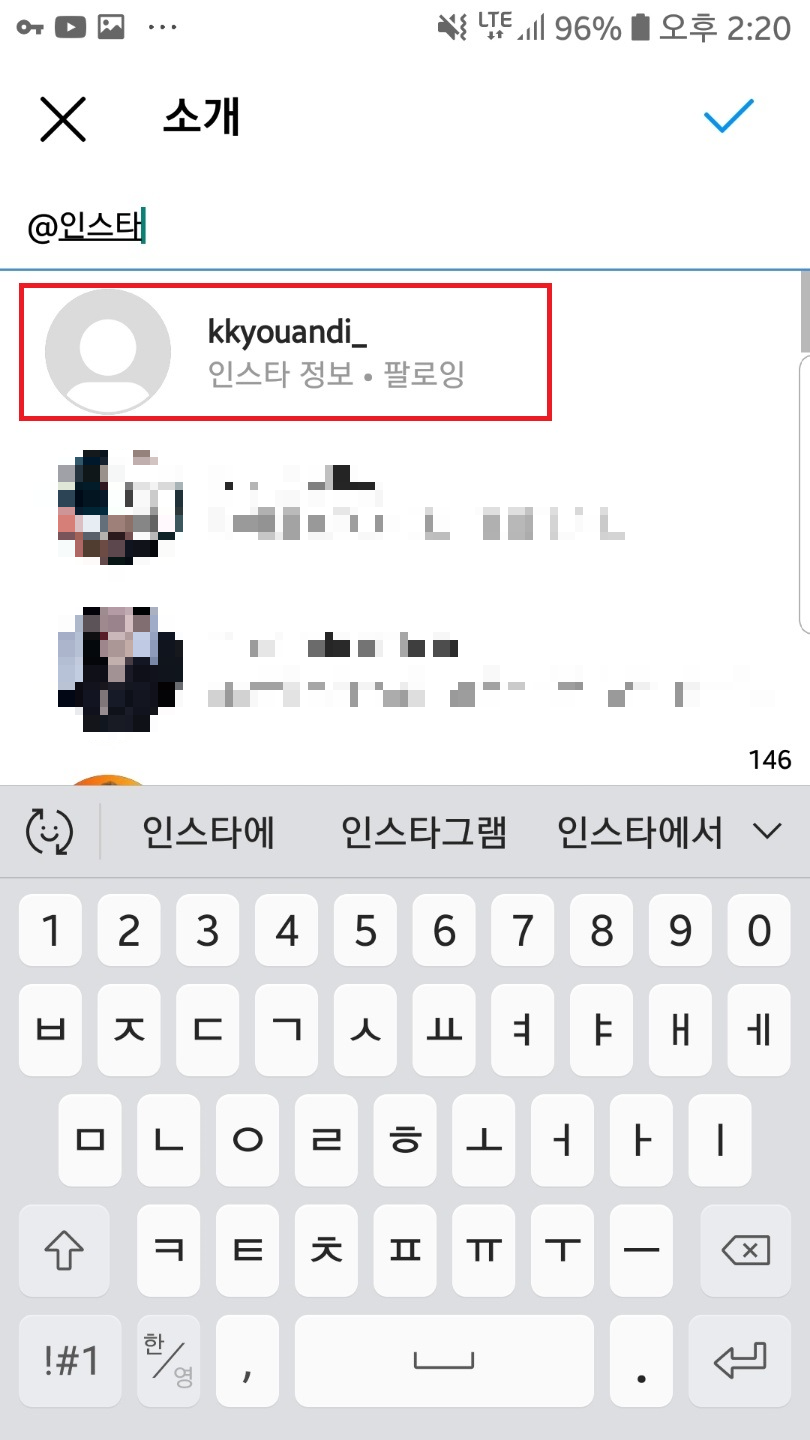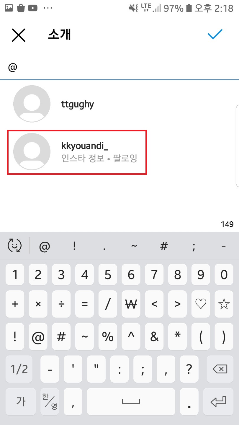 인스타 팔로잉을 하고 있는 사람이나 인스타 팔로우 요청을 받고 맞팔이 된 사람들, 혹은 연인이신 분들의 경우 소개글에 그 사람을 태그를 하고 싶을 때가 있잖아요.