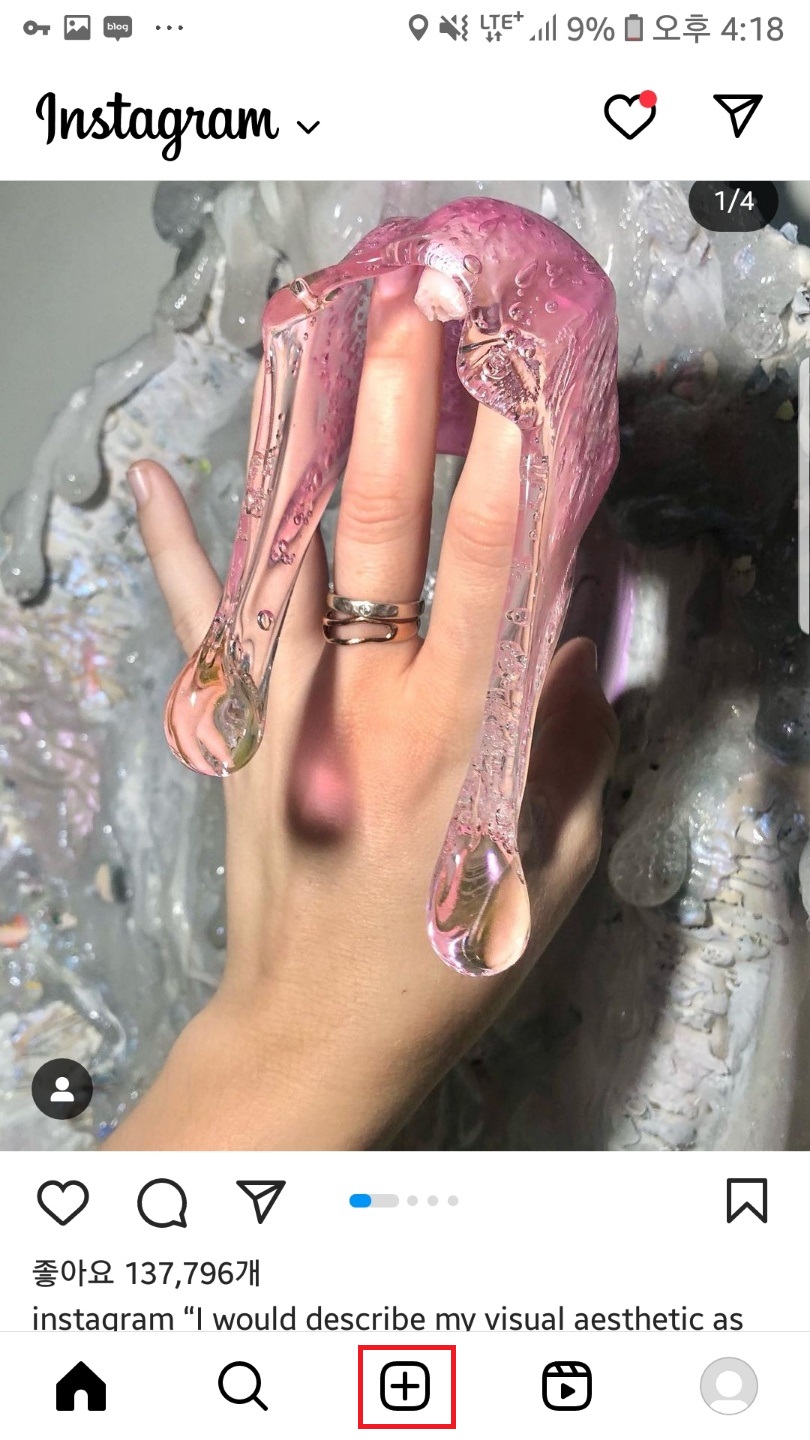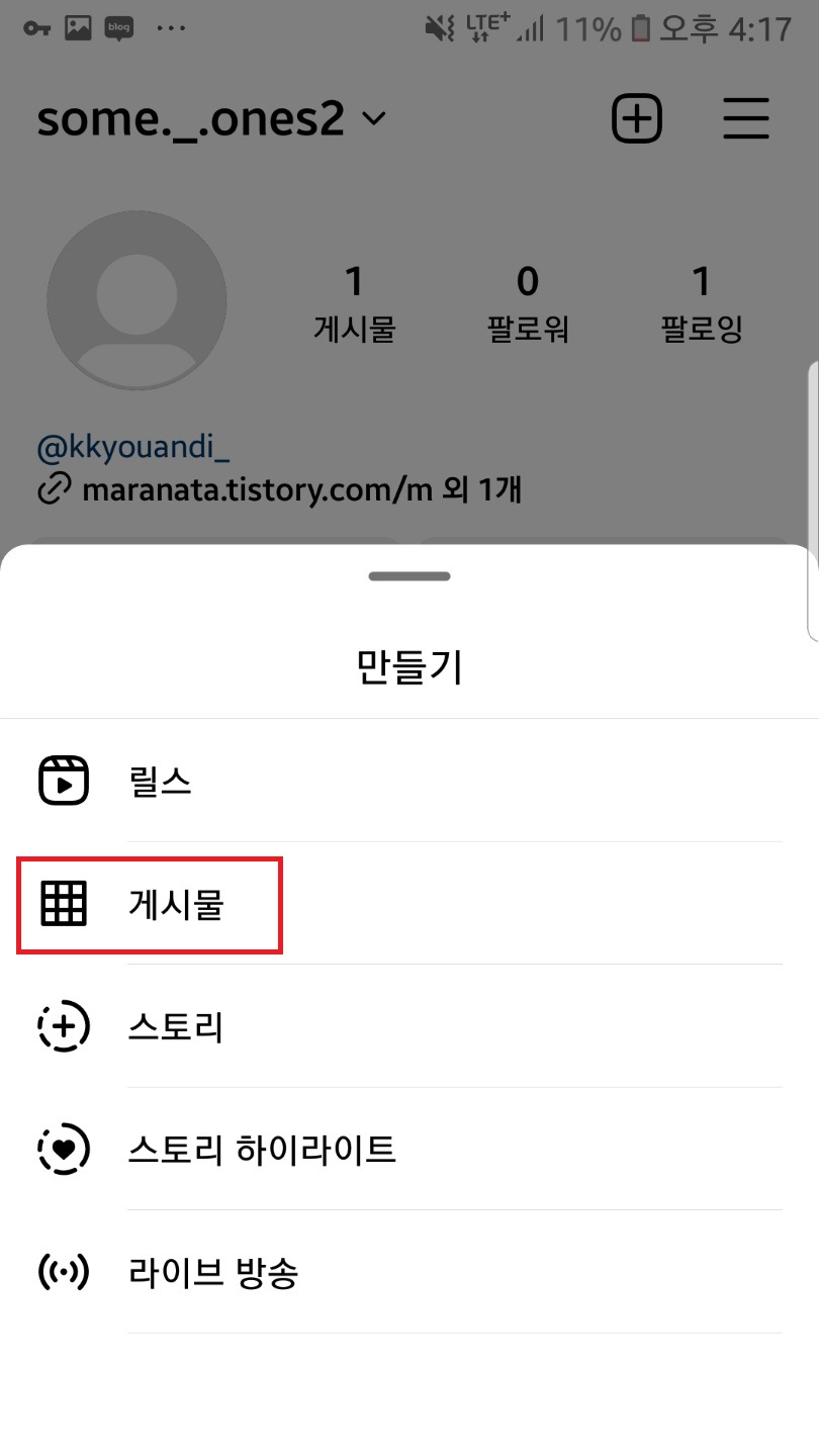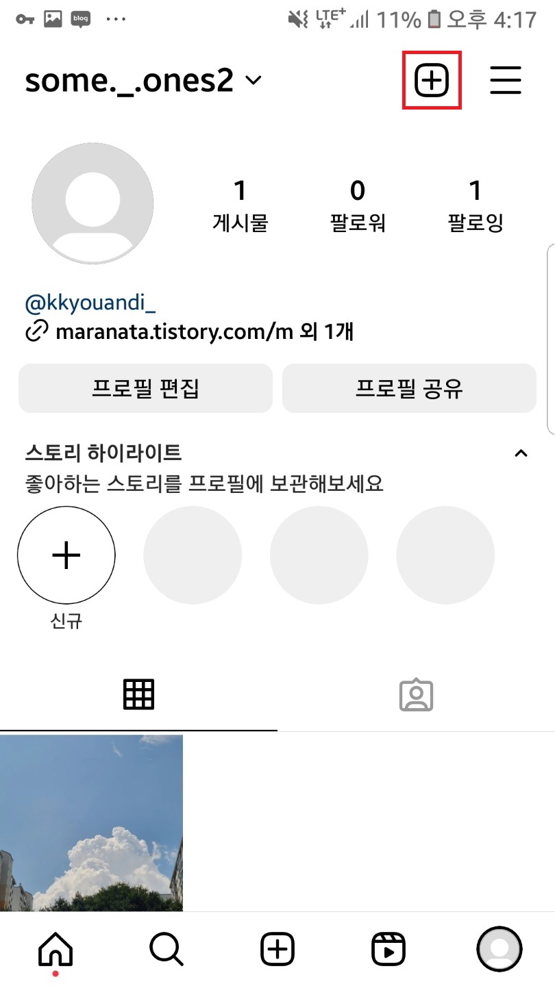 우측 상단 + 아이콘을 클릭하고 게시물에 들어가주세요.