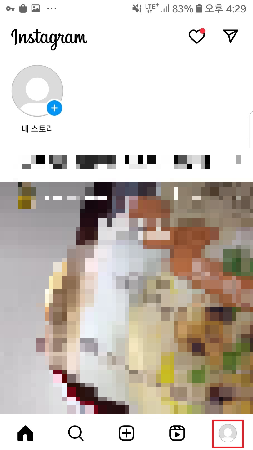 인스타그램을 실행하고 우측 하단 프로필을 클릭해 내 피드에 들어가주세요.
