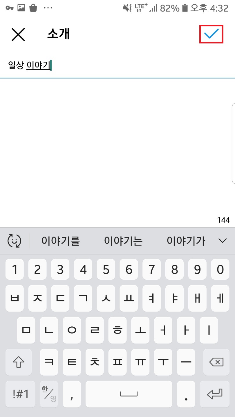 소개글을 작성하시고 우측 상단 체크표시를 눌러주세요.