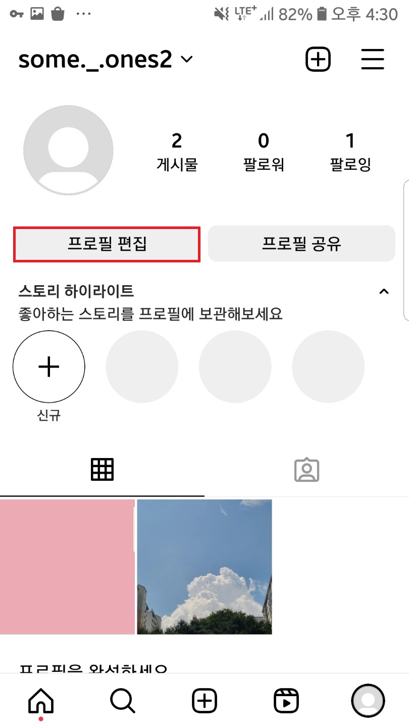 인스타그램을 실행하고 우측 하단 프로필을 클릭해 내 피드에 들어가주세요.