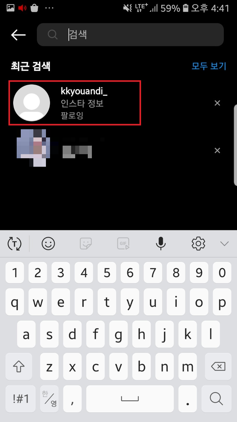 검색창을 클릭하고 계정을 검색해 들어가주세요!