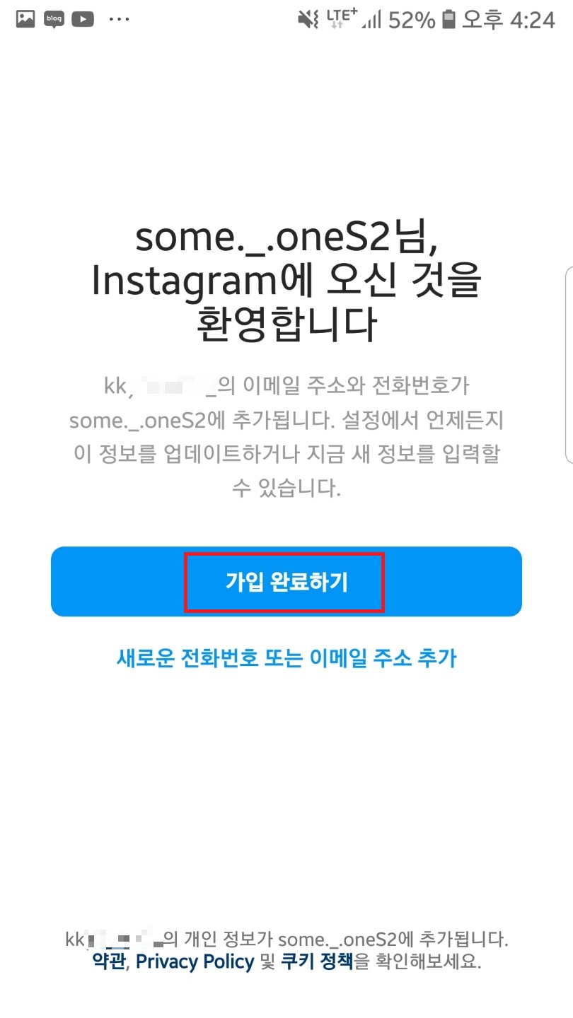 인스타그램 추가 새계정 만들기