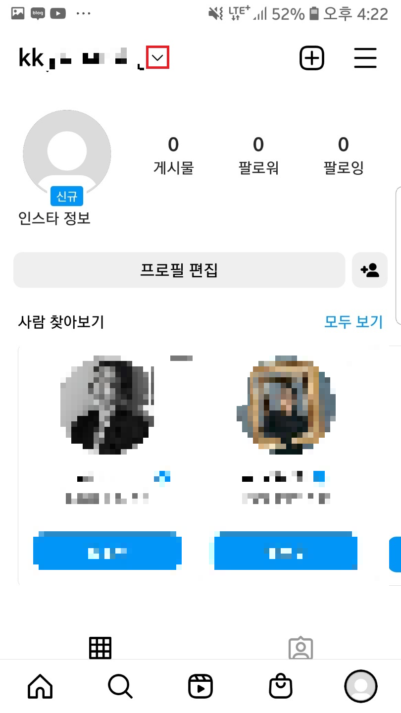 완료된 후 보이는 첫 화면에서 우측하단 프로필을 선택해보면 새계정이 만들어진 게 확인되실 거예요!