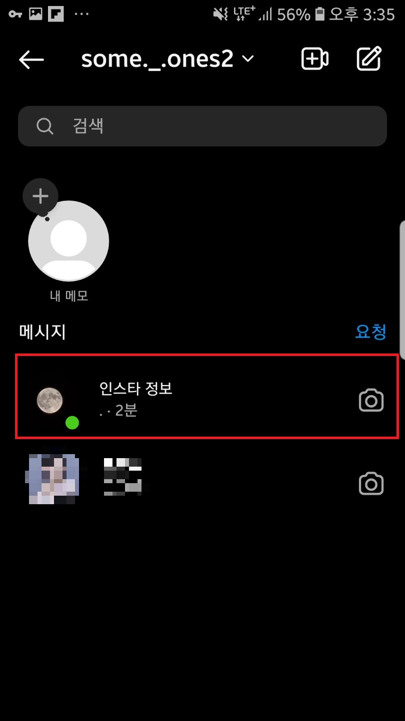 종이비행기 아이콘 ▶ 계정 선택 ▶계정 이름 클릭