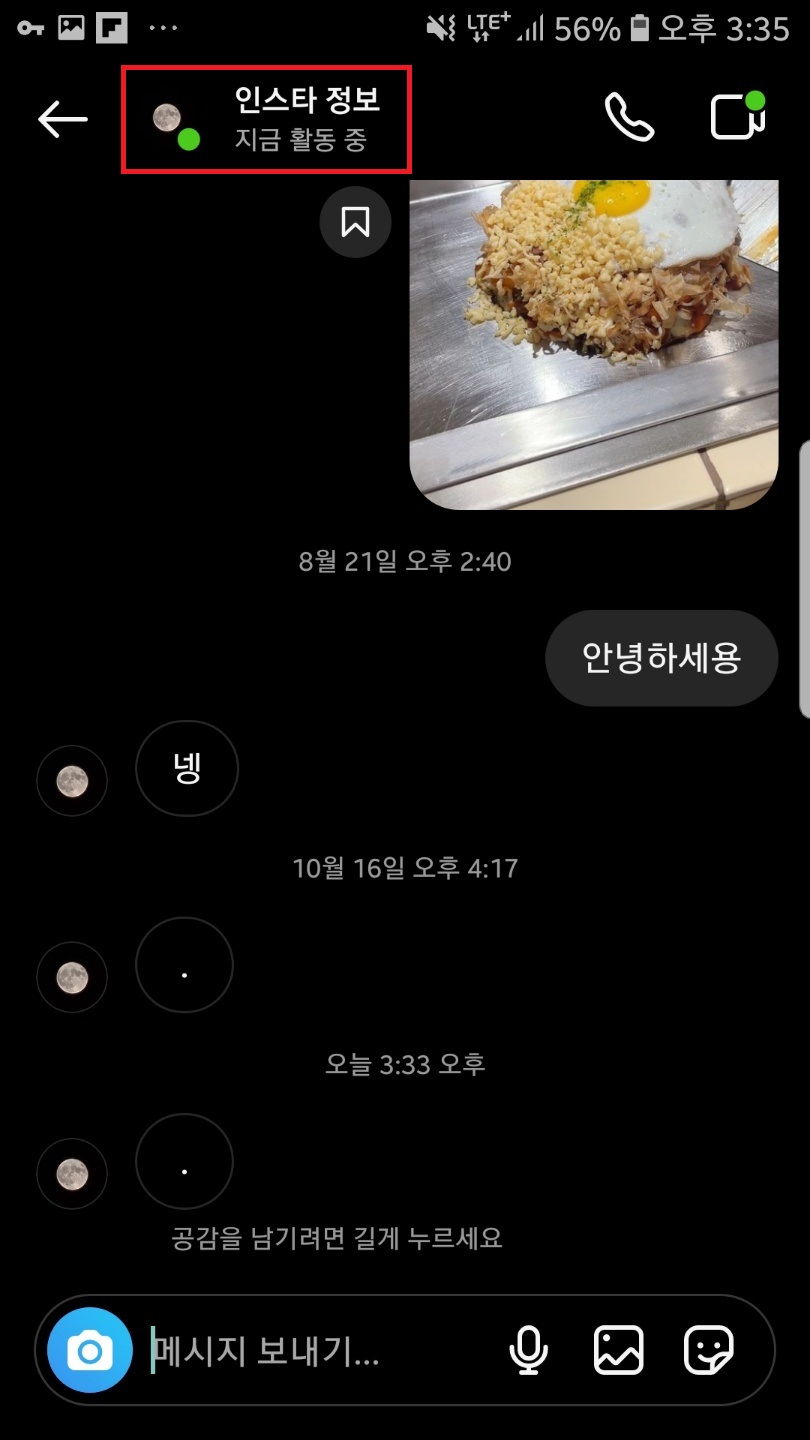 종이비행기 아이콘 ▶ 계정 선택 ▶계정 이름 클릭