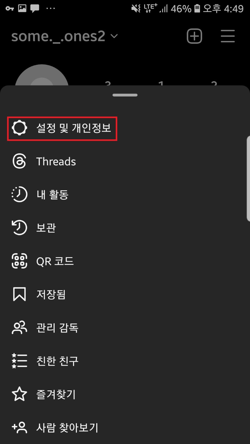 우측 상단 선 세개를 클릭하시고 설정 및 개인정보에 들어가주세요.