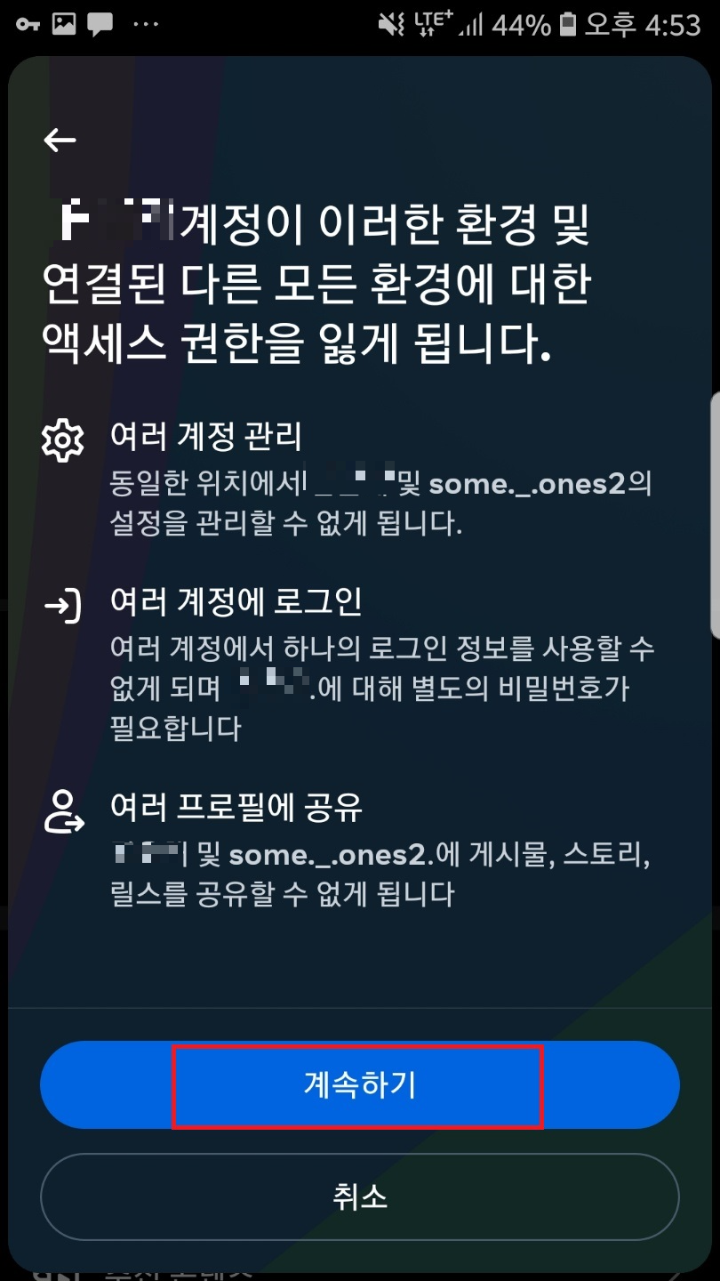 인스타그램 페이스북(페북) 연동 해제(끊기)