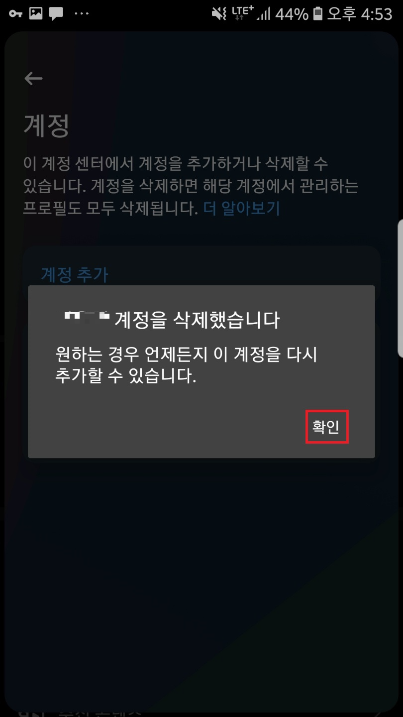 계속하기 ▶ 예.__ 계정을 삭제합니다 ▶확인