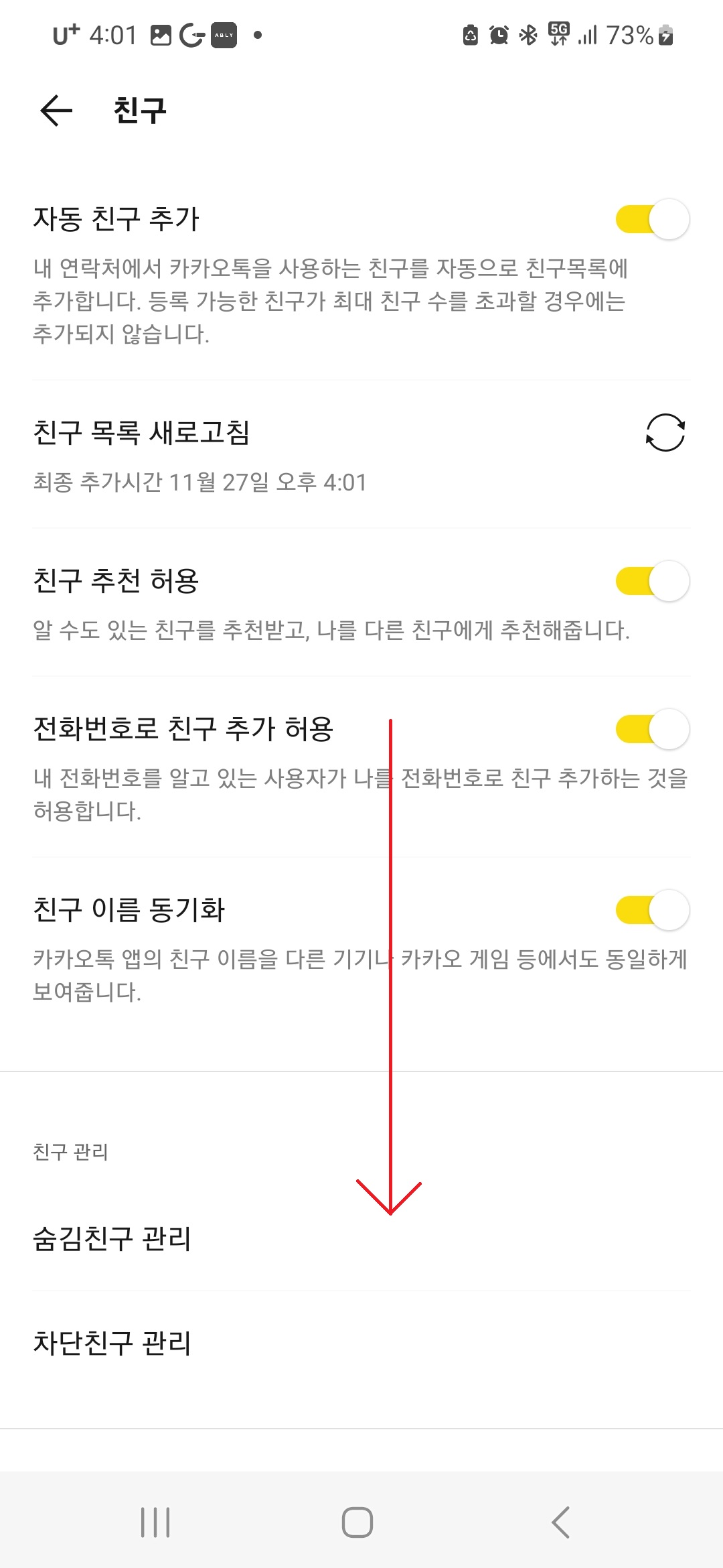 만약 내 생일 말고 타인의 생일을 보고싶지 않을 경우, 설정에서 친구에 들어가 아래로 스크롤 해주세요.