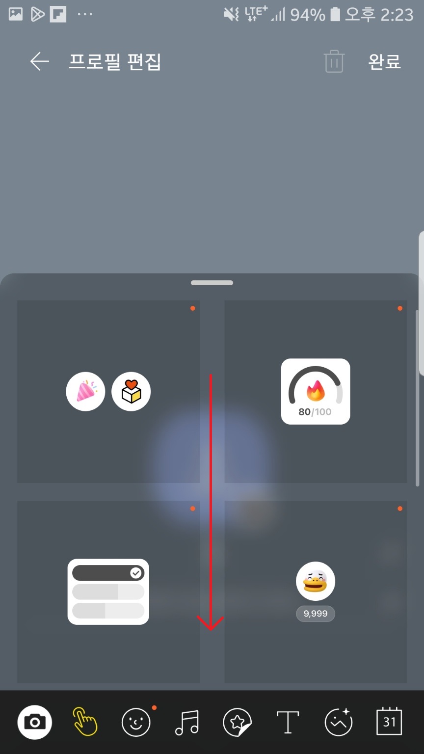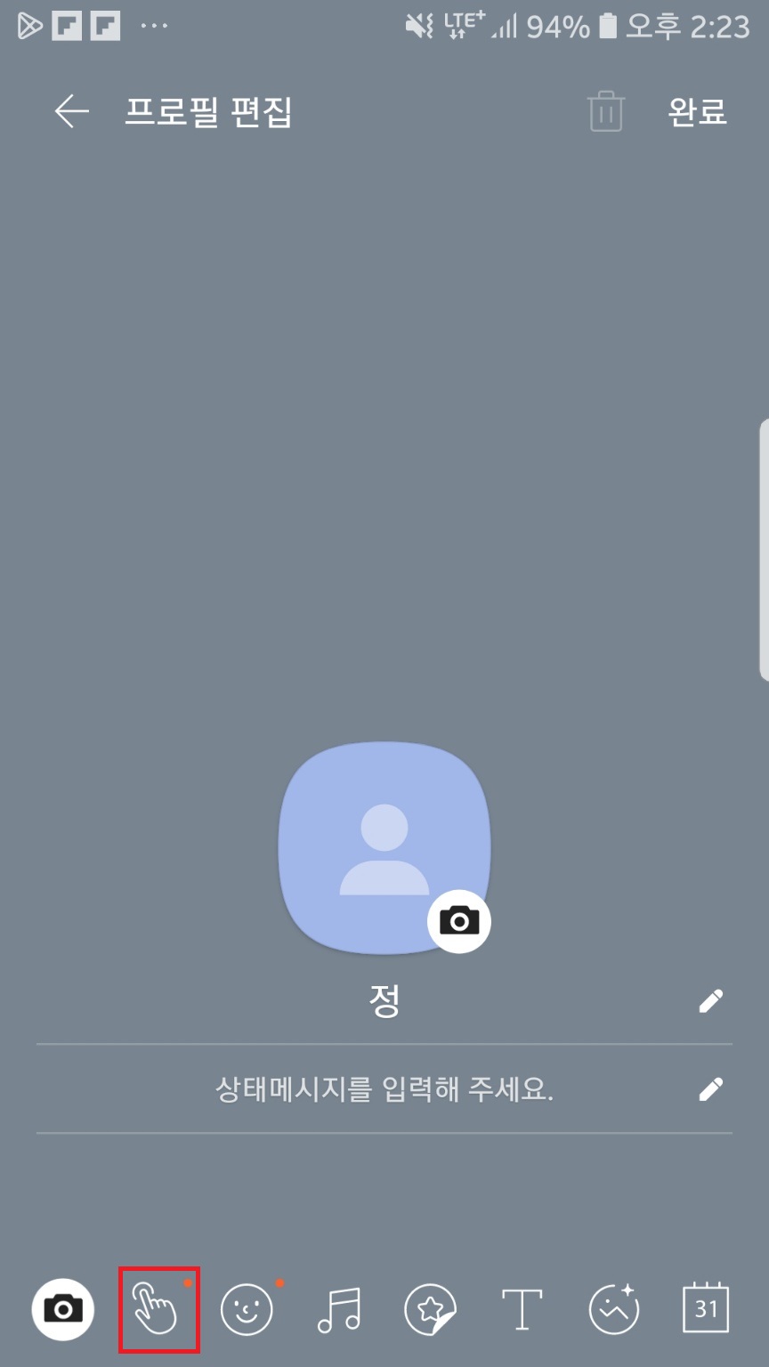 프로필 편집을 눌러준 후 하단 메뉴 중 좌측에 있는 손가락 아이콘을 클릭해주세요.