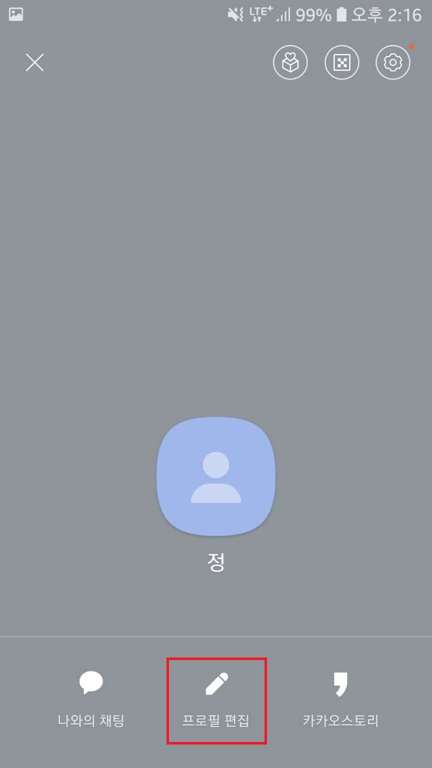 카톡 어플을 실행한 후 내 프로필을 클릭하여 들어가주세요.